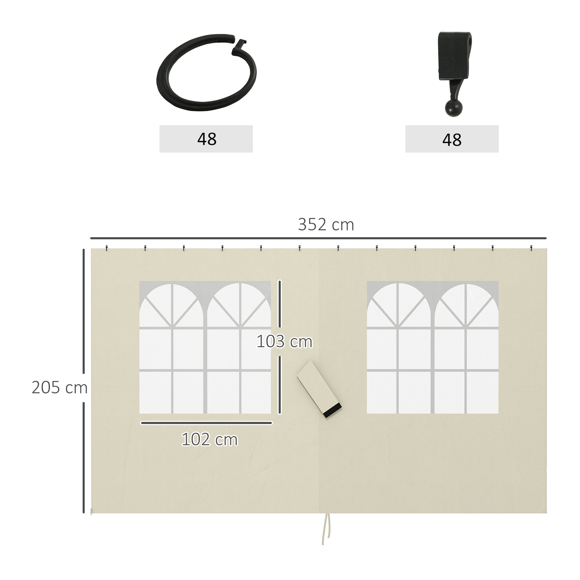 - - EASY INSTALLATIOUN: Dës Gazebo Säiten kommen mat 'C' Ringen a Haken, kompatibel mat enger breet Palette vu Gazebos. D'Haken maachen d'Plazéierung op schiifende Schinnen méi einfach, während 'C' Ringen ideal fir ronn oder eckeg Bäamtuben sinn