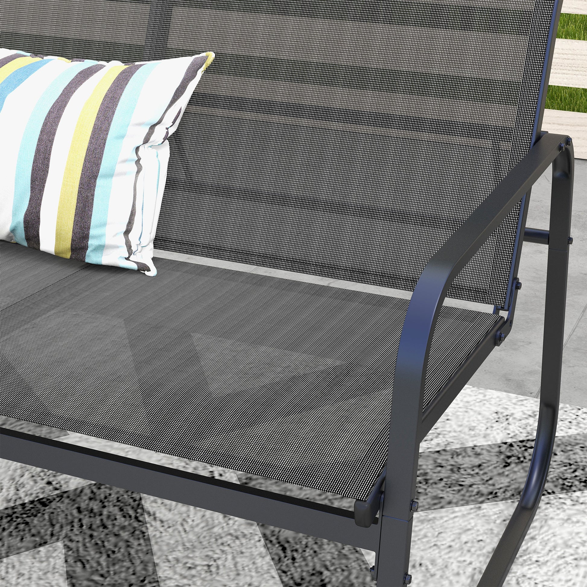 Outsunny 4 Stécker Garte Mëbel Set, Garte Set mat 1 Zweisëiter, 2 Stull, 1 Kaffistock, Sëtz Set, Balkon Mëbel Set fir Patio, Mesh, Schwaarz