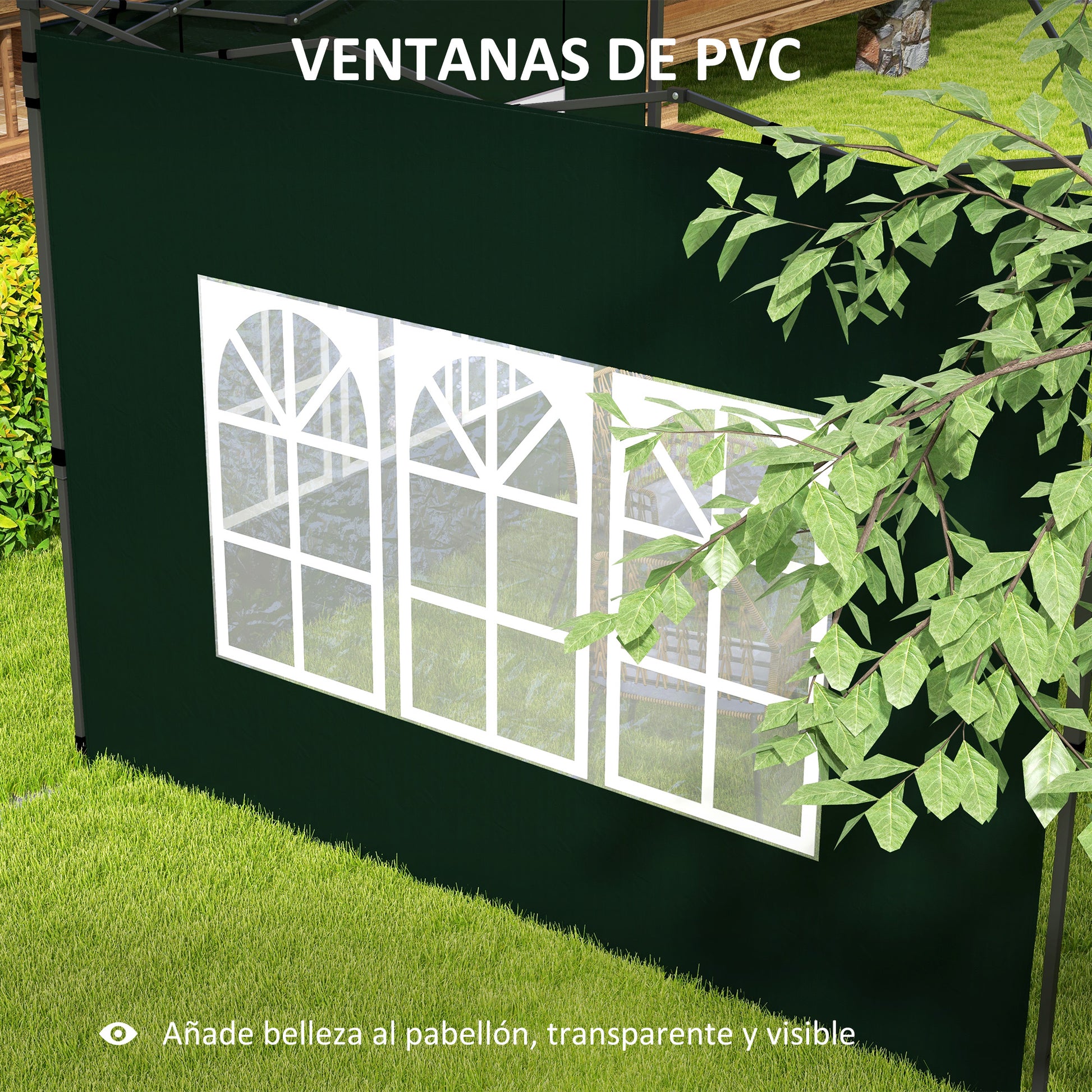 Outsunny Säit Wänn fir Gazebo 3x3 m a 3x6 m Set mat 2 Wänn fir Canopy mat Fënster 293x193 cm Dunkelgréng