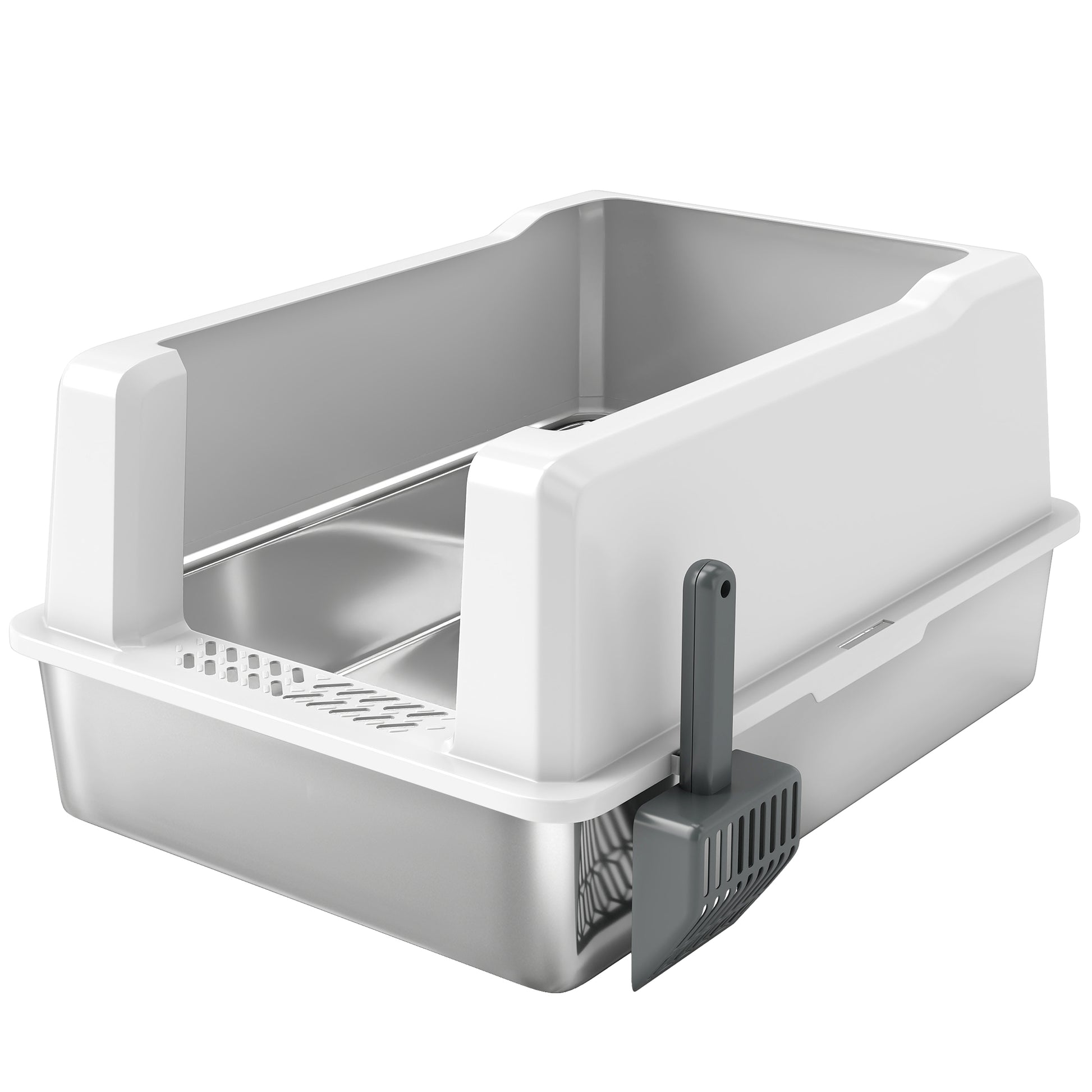 PawHut XXL Waasserdicht Katzenstreu Këschte, Kätzchen Toilette mat Héich Wänn, Edelstahl Tray an Schëffel, Kätzchen Këschte aus ABS, 71x50.8x35.5 cm, Weiss