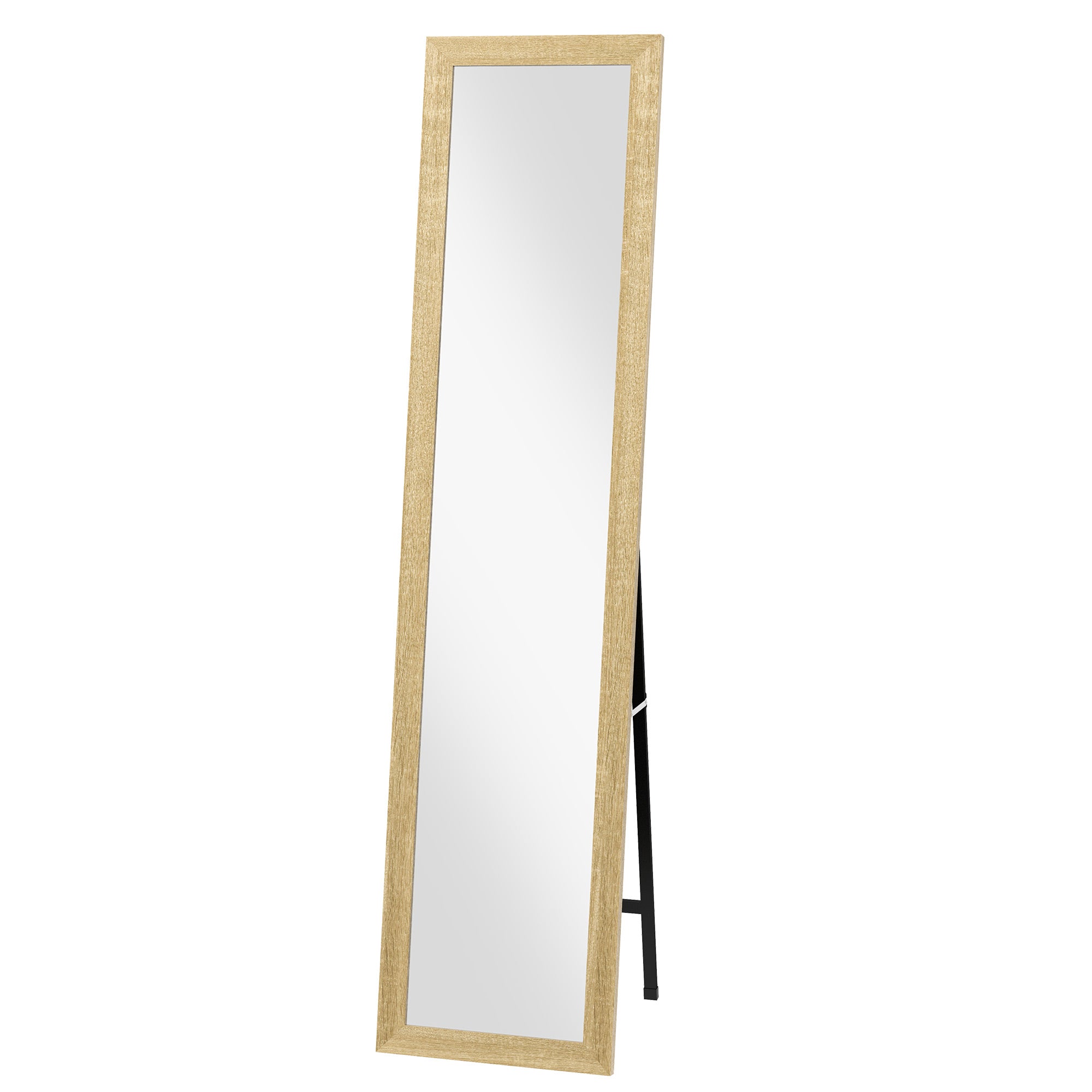 HOMCOM Stačiakampis veidrodis ant sienos arba stalo su mediniu rėmu svetainėje ir miegamajame 37 x 157 cm natūralios medienos