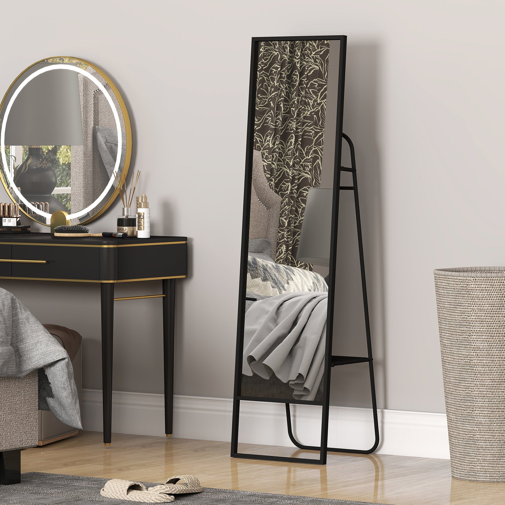 HOMCOM Visas Ilgis Grindų Veidrodis 148.5 x 40 cm, Stačiakampis Veidrodis su Galine Lentyna, 2 Kabliukais ir Metaliniu Rėmu, Miegamajam, Svetainėms ir Pasiruošimo Ertmei, Juodas