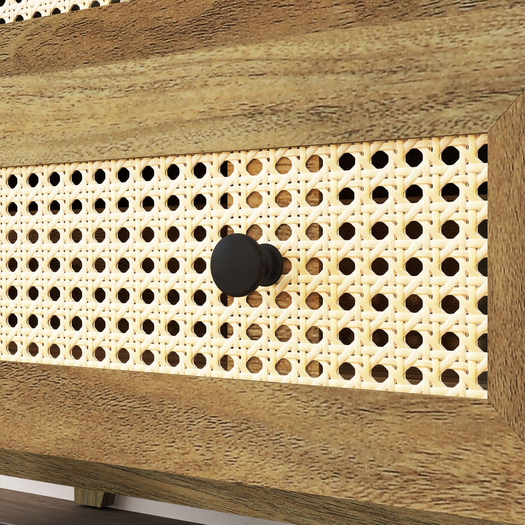 HOMCOM Lovos staliukas su pintu rataniniu durelių spinteliu ir lentyna + 1 stalčius bohemiško dizaino - 40 x 40 x 68.5 cm Natūralus