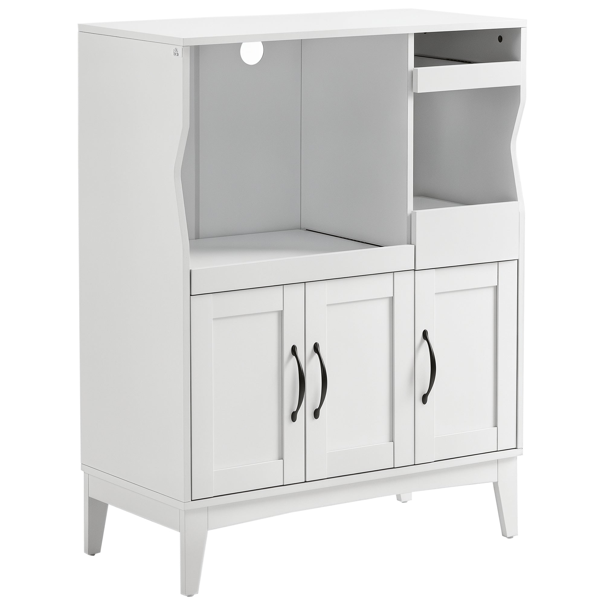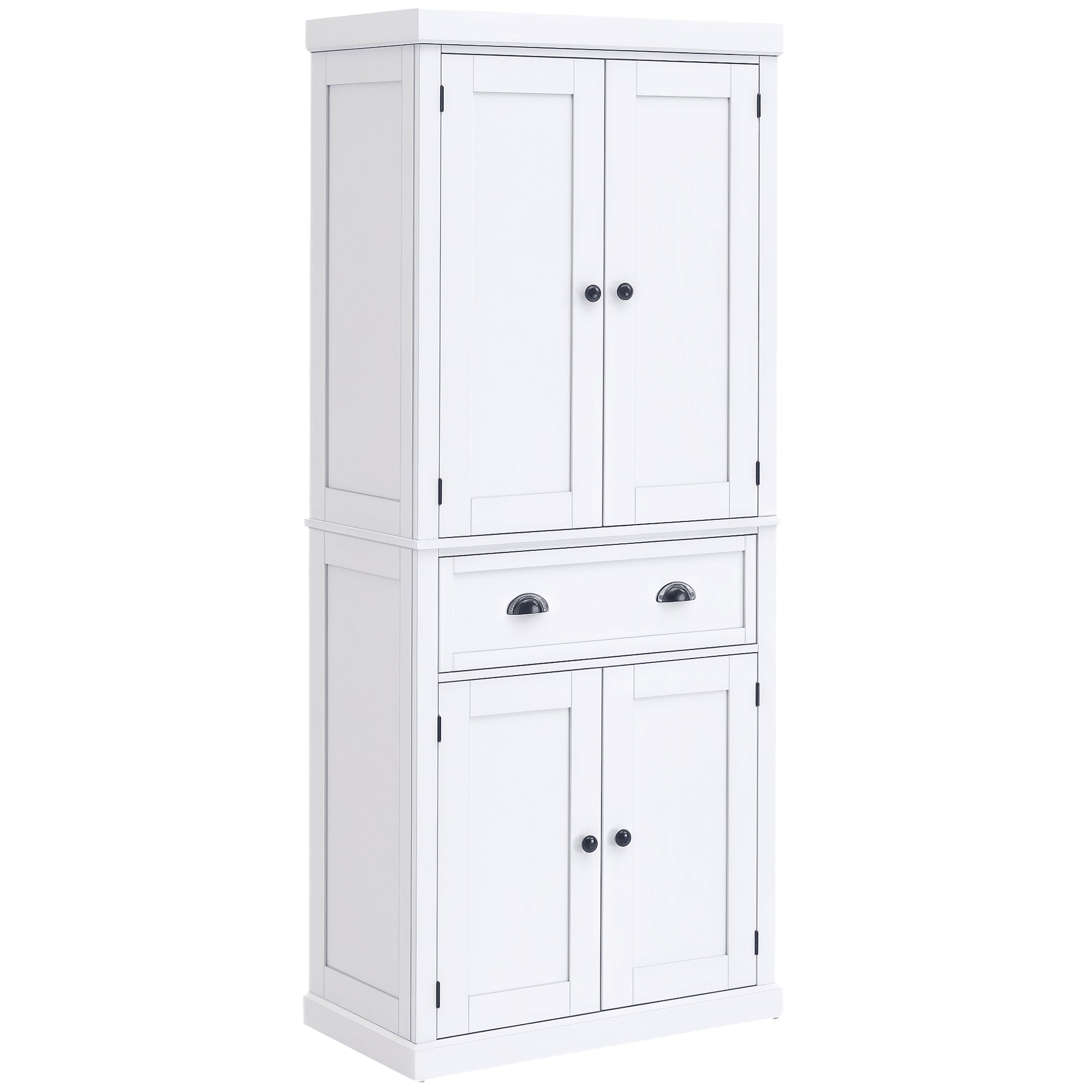 HOMCOM Virtuvės Buffet Spinta Su Daugiafunkciniu Saugojimu, 4 Durys, 1 Mažasis Stalčius, Lentyna + Didelis Darbo Paviršius 71 x 41 x 178 cm Balta MDF