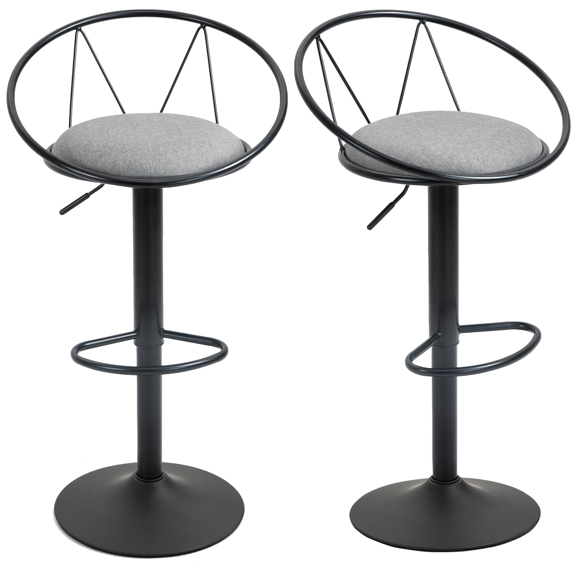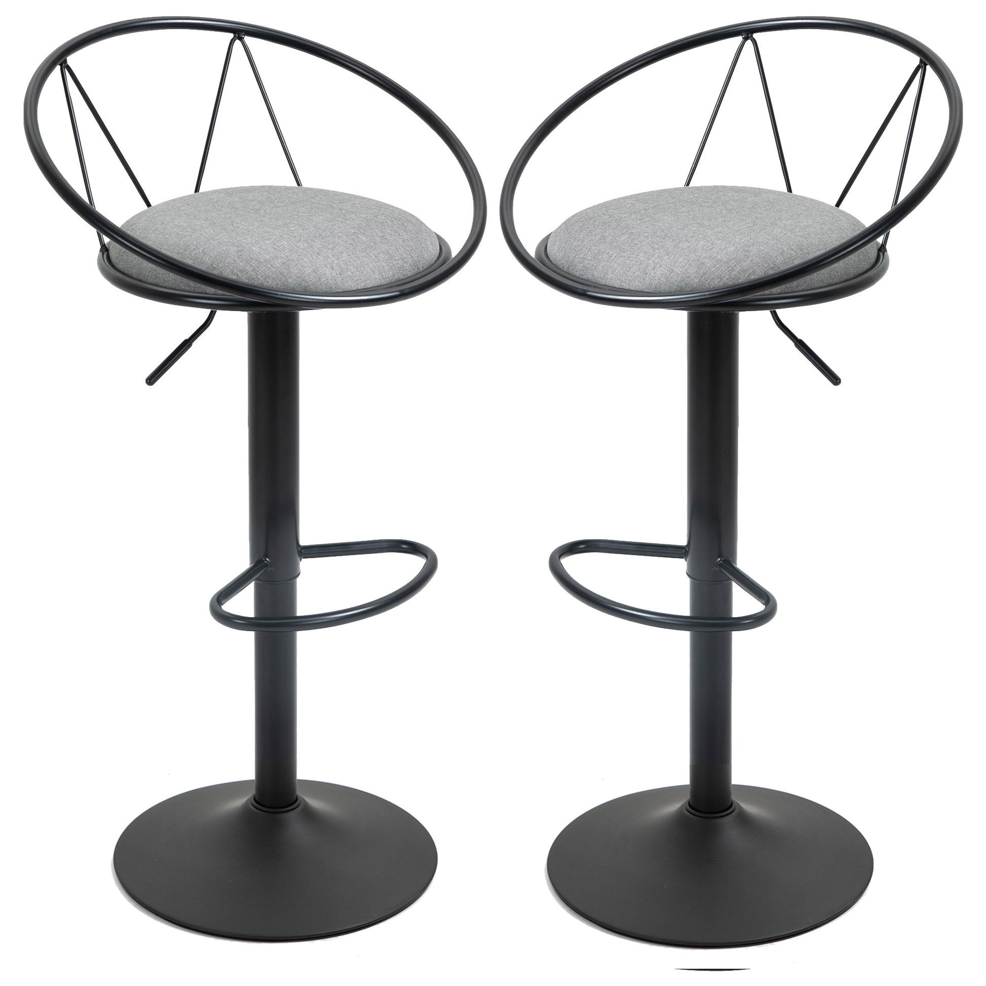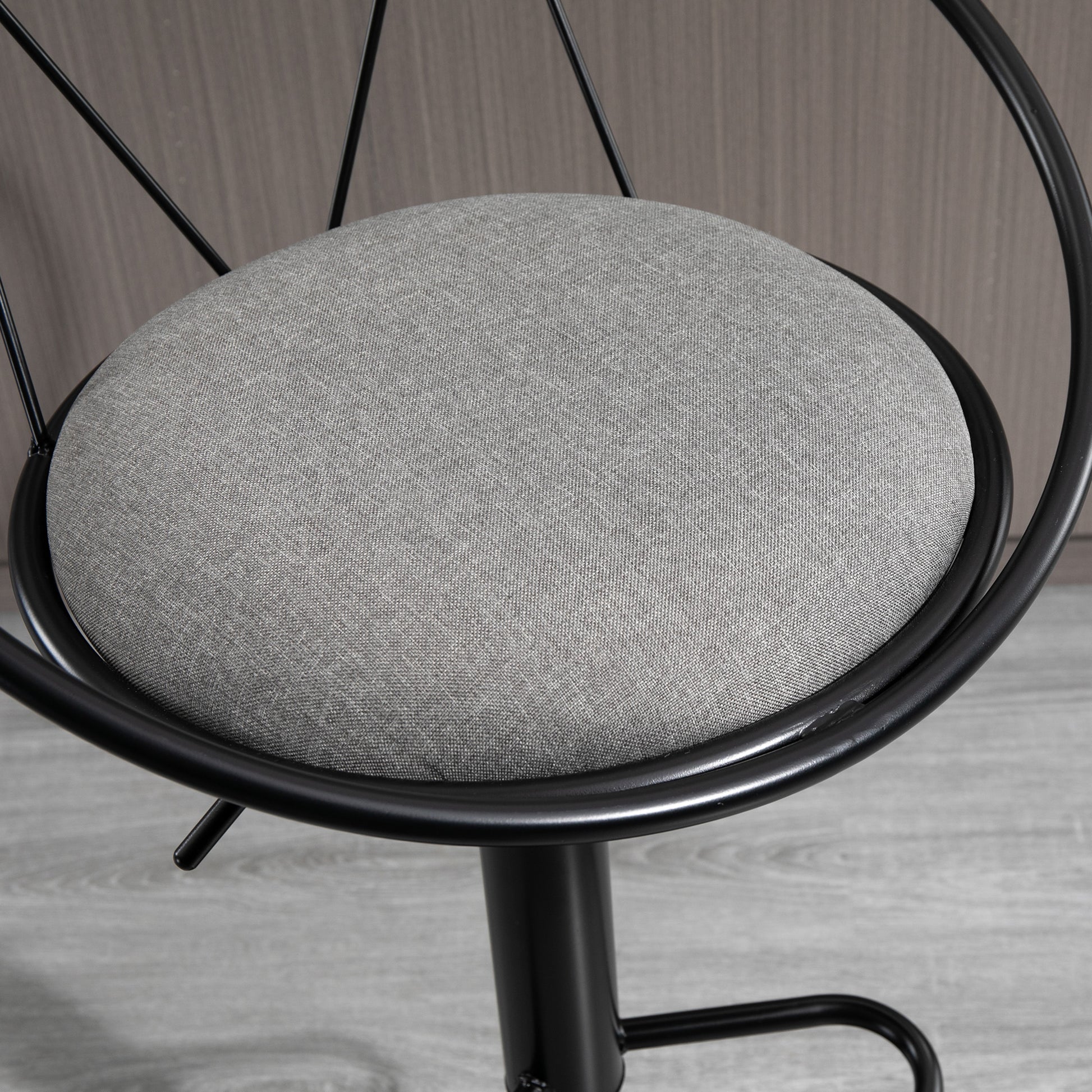 HOMCOM 2 vnt. Neo-Retro stiliaus baro kėdžių rinkinys su reguliuojamu metaliniu pakoju, juodos ir pilkos lino