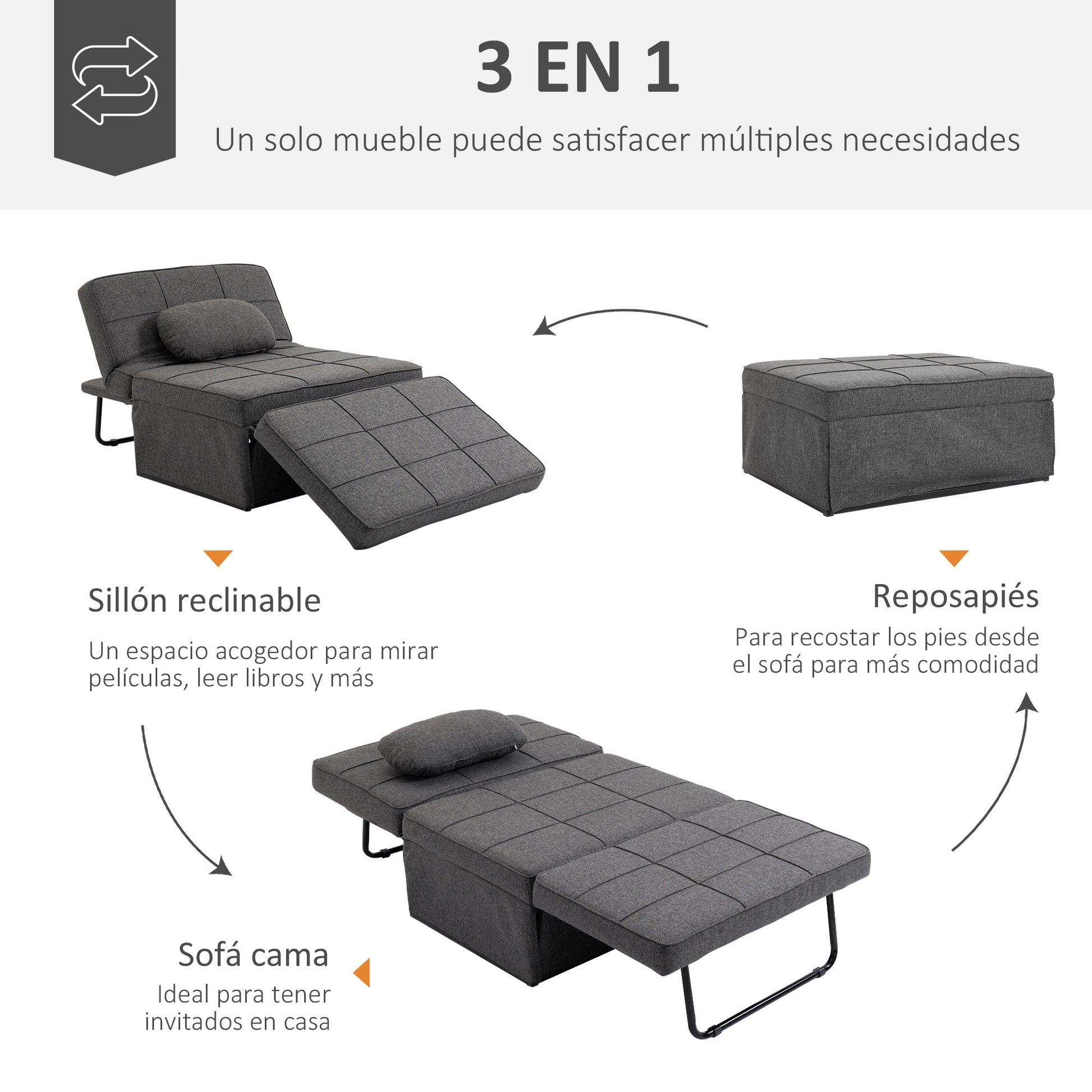 HOMCOM 3 in 1 Sulankstomas Sofa-Lova Vienvietė Sofa-Lova Aptrauktas Džinsiniu Audiniu, Konvertuojama Sofa-Lova su 5 Reguliuojamomis Atlošo Padėtimis, Pakojis ir Galvos Atlošas, Apkrova 200 kg, Pilkas