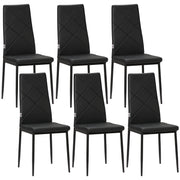 HOMCOM 6 vnt. Apmuštų Aukštų Atlošų Pusryčių Kėdžių Rinkinys, Virtuvės Kėdės Iš Dirbtinės Odos Su Deimantiniu Siuvinėjimu, Neslidžiais Kojelėmis Ir Plieno Kojomis, 41x50x97 cm, Juoda