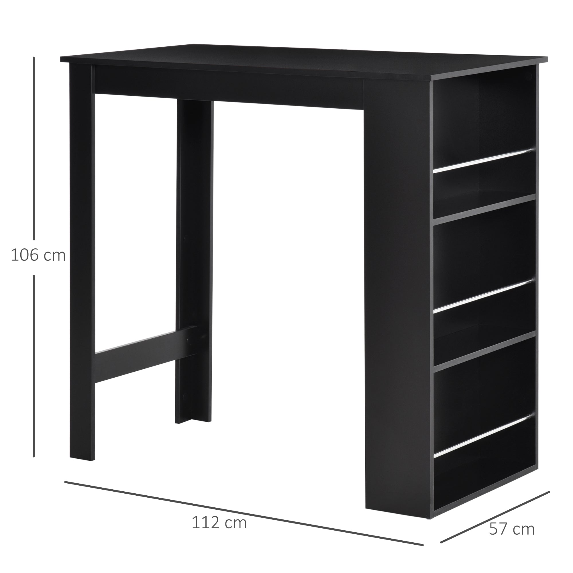 HOMCOM Bistro Baro Stalas su 3 Lentynomis Gėrimams ir Barui, Laminuota Medinė Konstrukcija, Aukštas Stalas Virtuvei ir Svetainiai 112x57x106 cm Juoda