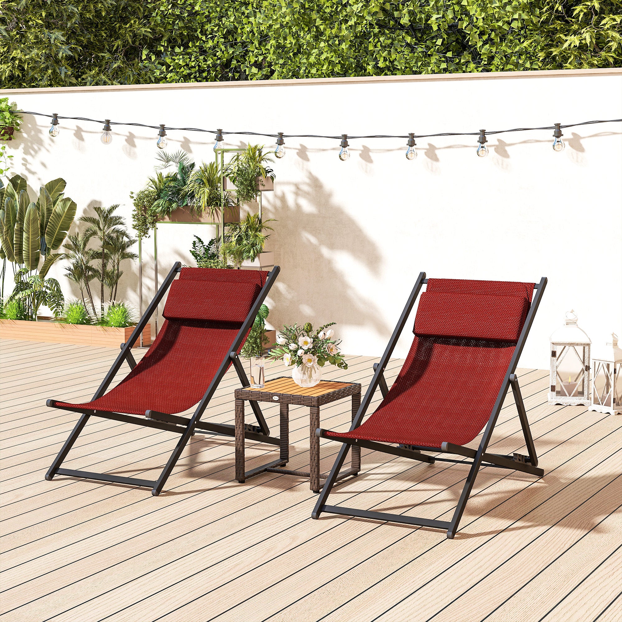 Outsunny 2 vnt. Lauko Poilsio Reclining Kėdžių Rinkinys, Sulankstomos, Aliuminis, 96,5x58x91,5 cm, Raudona
