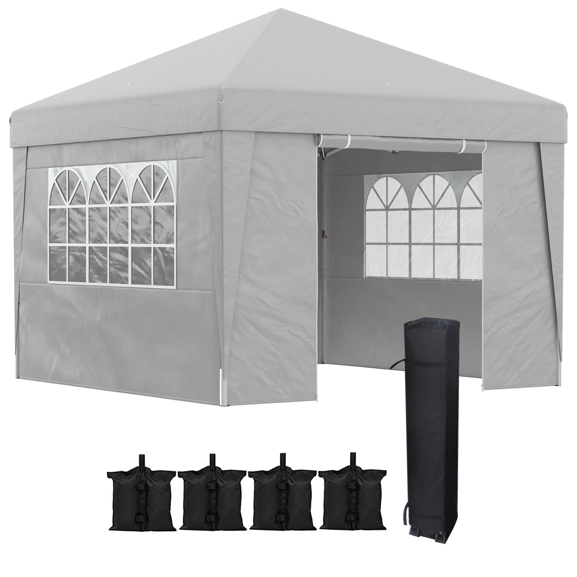 Outsunny Ištraukiamas Lankstomas Sodo Paviljonas Su UV-30+ Apsauga 3 x 3 m Su Langais Šoninėmis Sienomis Nešimo Krepšys Smėlio Maišai Pilkas