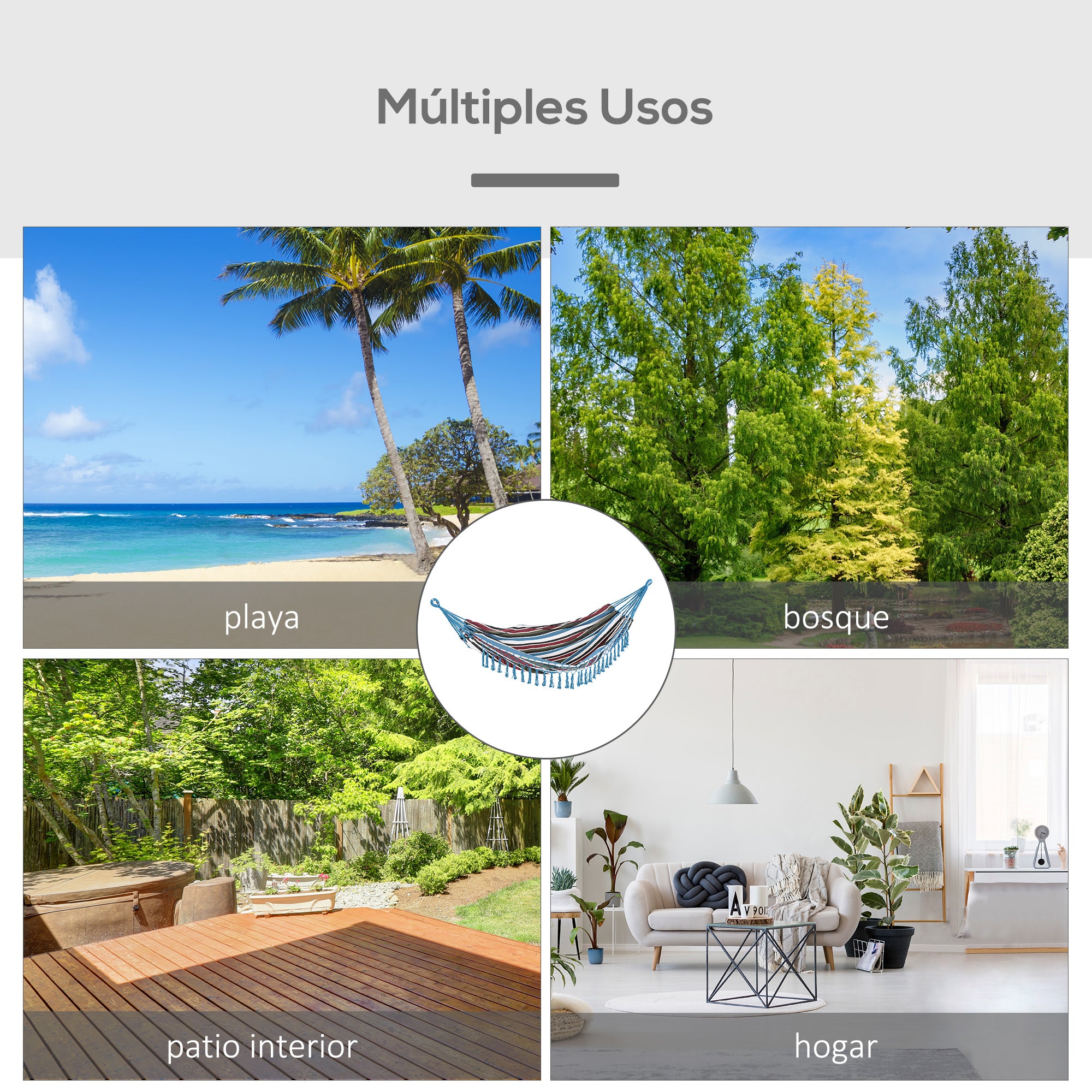 Outsunny Nešiojama Dviejų asmenų Medvilninė Hamakas 285x150 cm su Nešimo Krepšiu Lauko Patiui Sode Paplūdimyje Kempinge iki 120 kg Daugiaspalvis