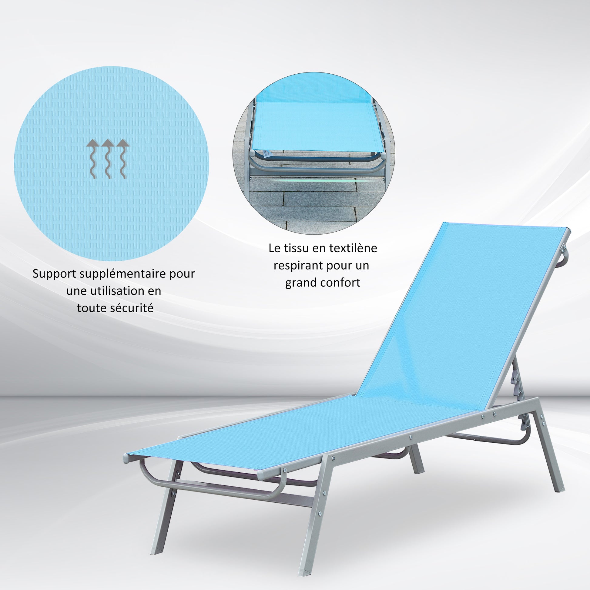 Outsunny Saulės Gultas - Chaise Longue - Modernus Dizainas - Daugiafunkcinis Reguliuojamas Atlošas - Epoksiškai Padengtas Metalinis Textilene Danga - d.dim. 170 x 58 x 97 cm