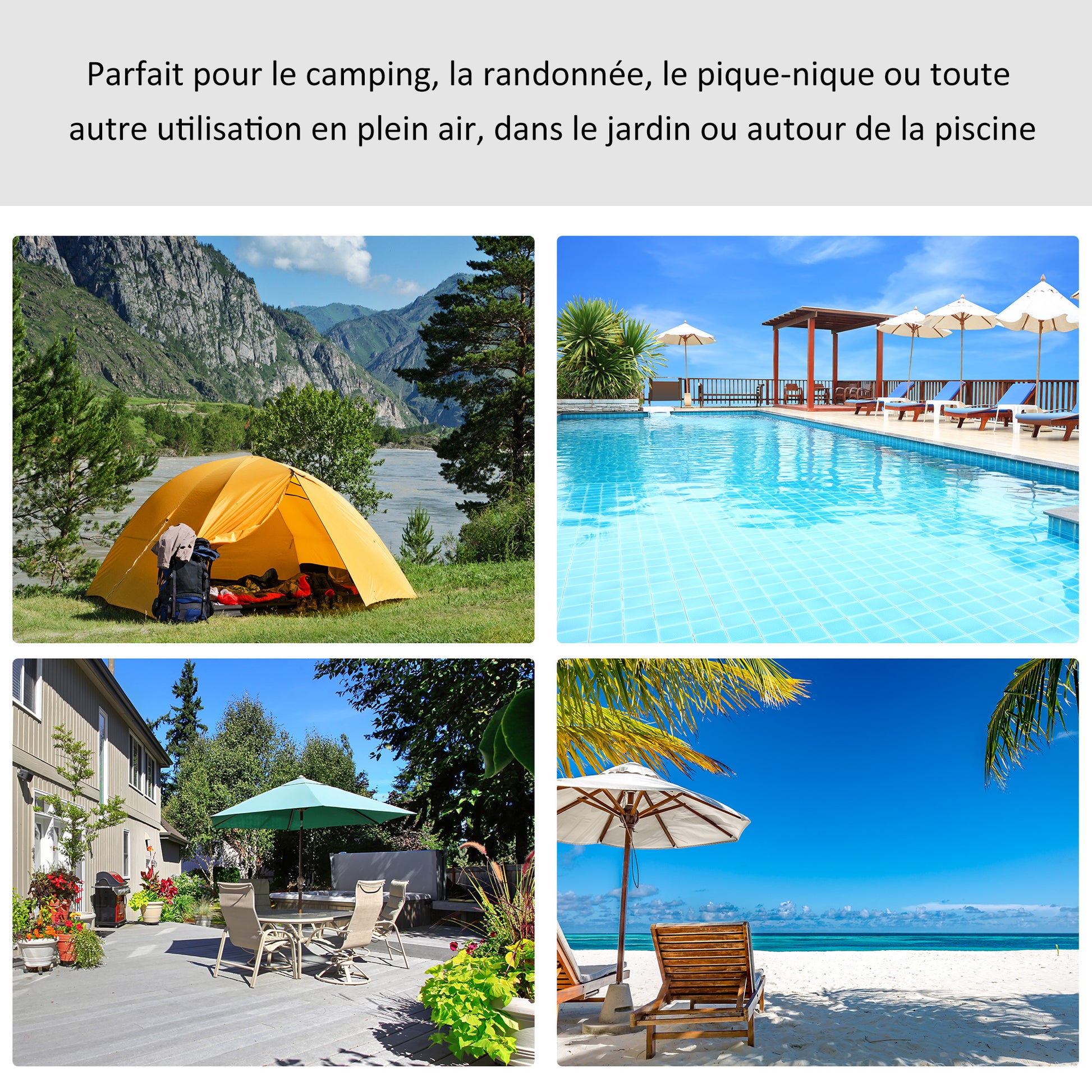 - - KOKYBIŠKAS PADAŽAS: aukštos tankio komforto tekstilės danga 580 g/m²: UV atspari, drėgmei atspari, atspari saulės kremams ir aliejams, ideali naudojimui prie jūros ar baseino