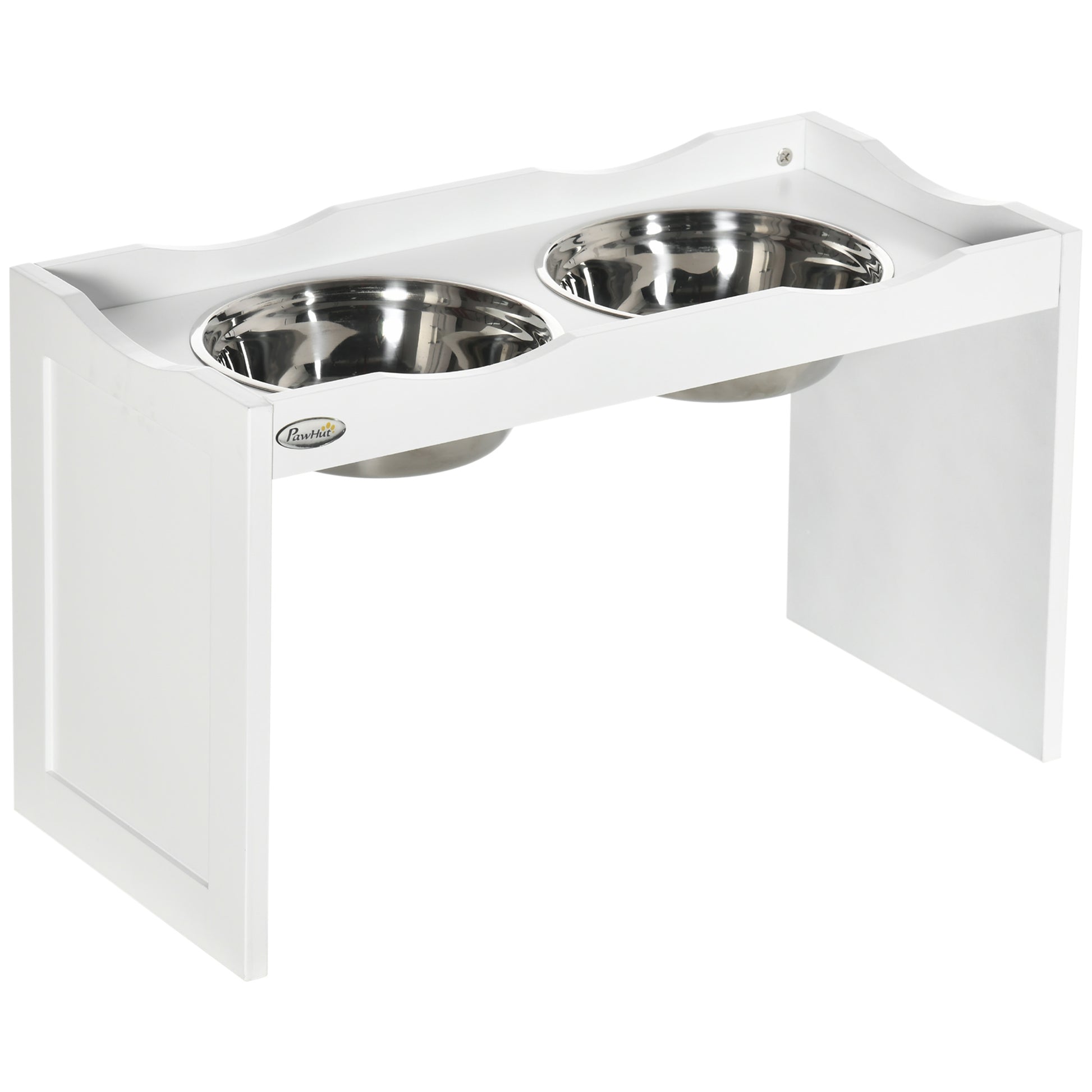 PawHut Pakeltas Šuns Dubuo, Šėrimo Dubuo su Pakeltu Kraštu, 2 x 2L Nuimamas Nerūdijančio Plieno Šuns Dubuo, Šėrimo Stotelė Labai Dideliems Šunims, Balta