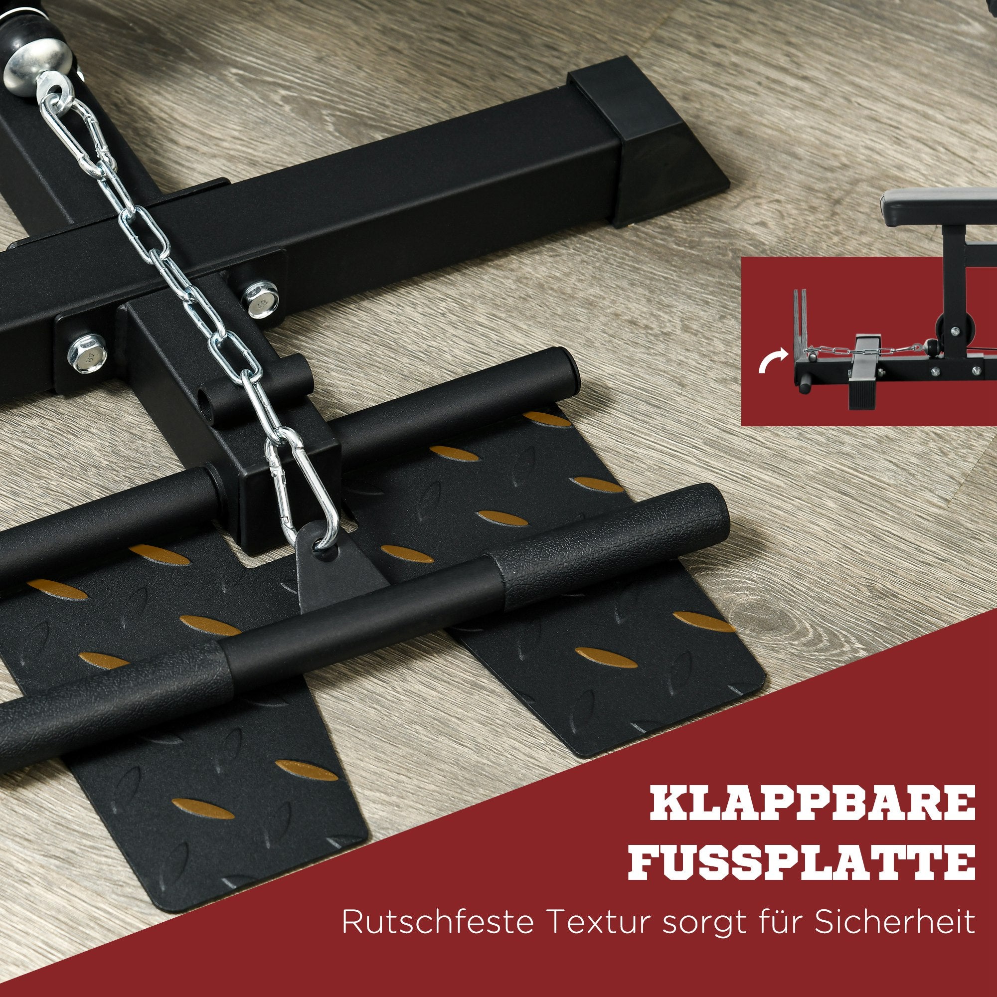 - - Neslidus, sulankstomas padas: Lat pulldown mašinos priekinių pedalų galima sulankstyti iki 90°, leidžiant įvairiai treniruotis. Neslidus paviršius užtikrina jūsų saugumą treniruočių metu
