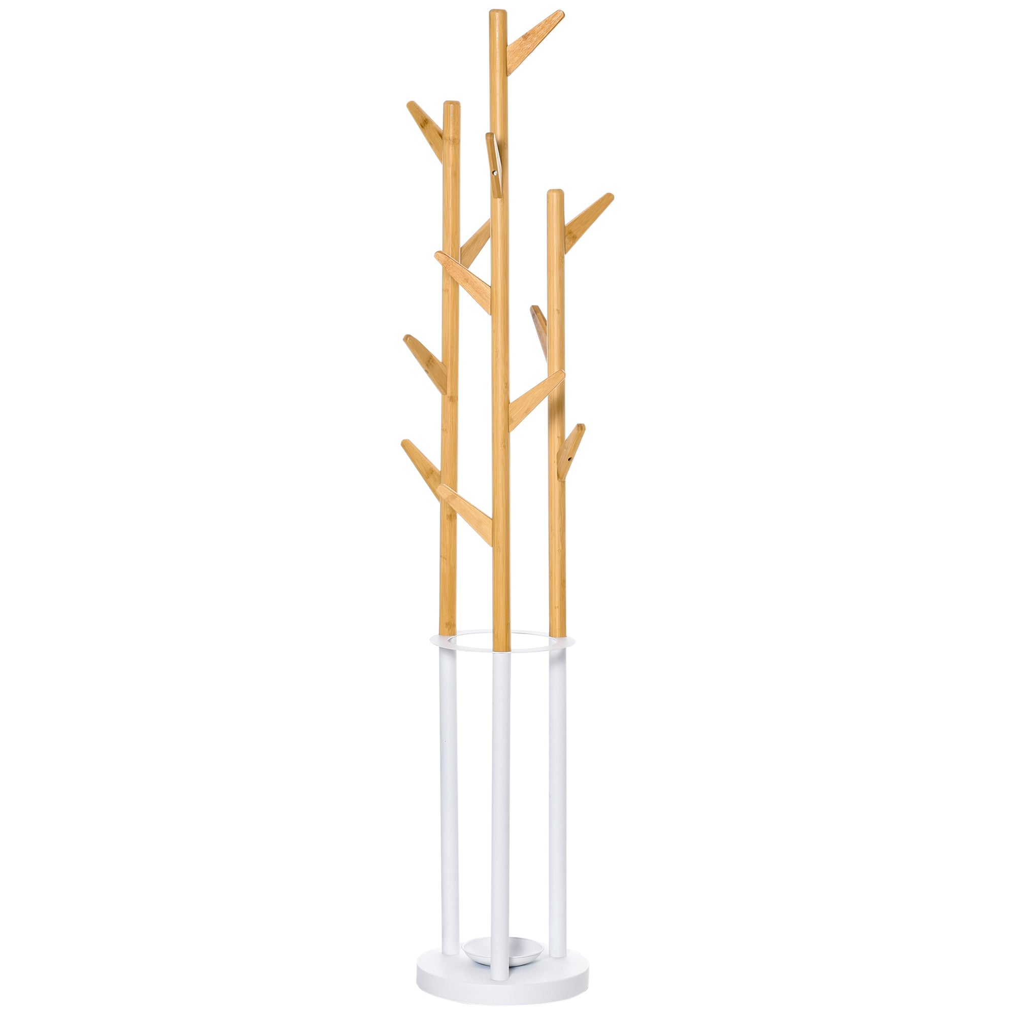 HOMCOM mēteļu statīvs ar 9 āķiem, 3 līmeņiem, moderns garderobes statīvs apģērbam, cepurēm un somām, viesistabā, dabisks