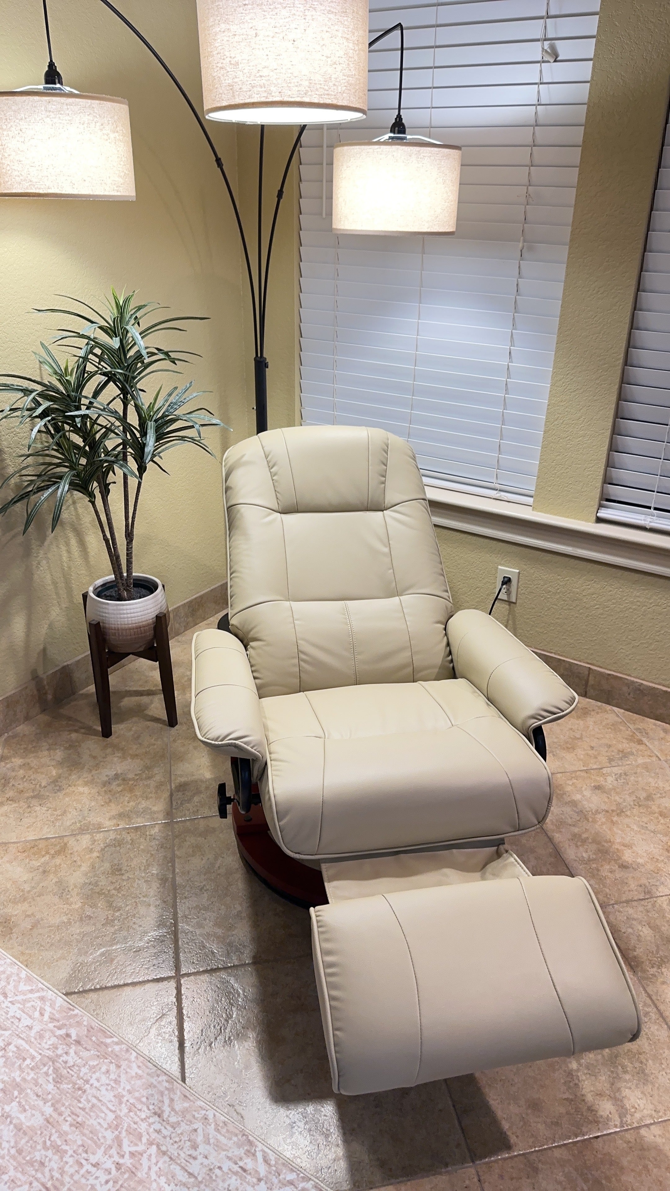 - - 145° regulējama atzveltnes un manuāls paliknis: Pielāgojiet atzveltnes leņķi ar sānu leveru atbilstoši jūsu vēlmēm. Paliknis maigi paaugstina kājas un veicina relaksētu ķermeņa stāju.