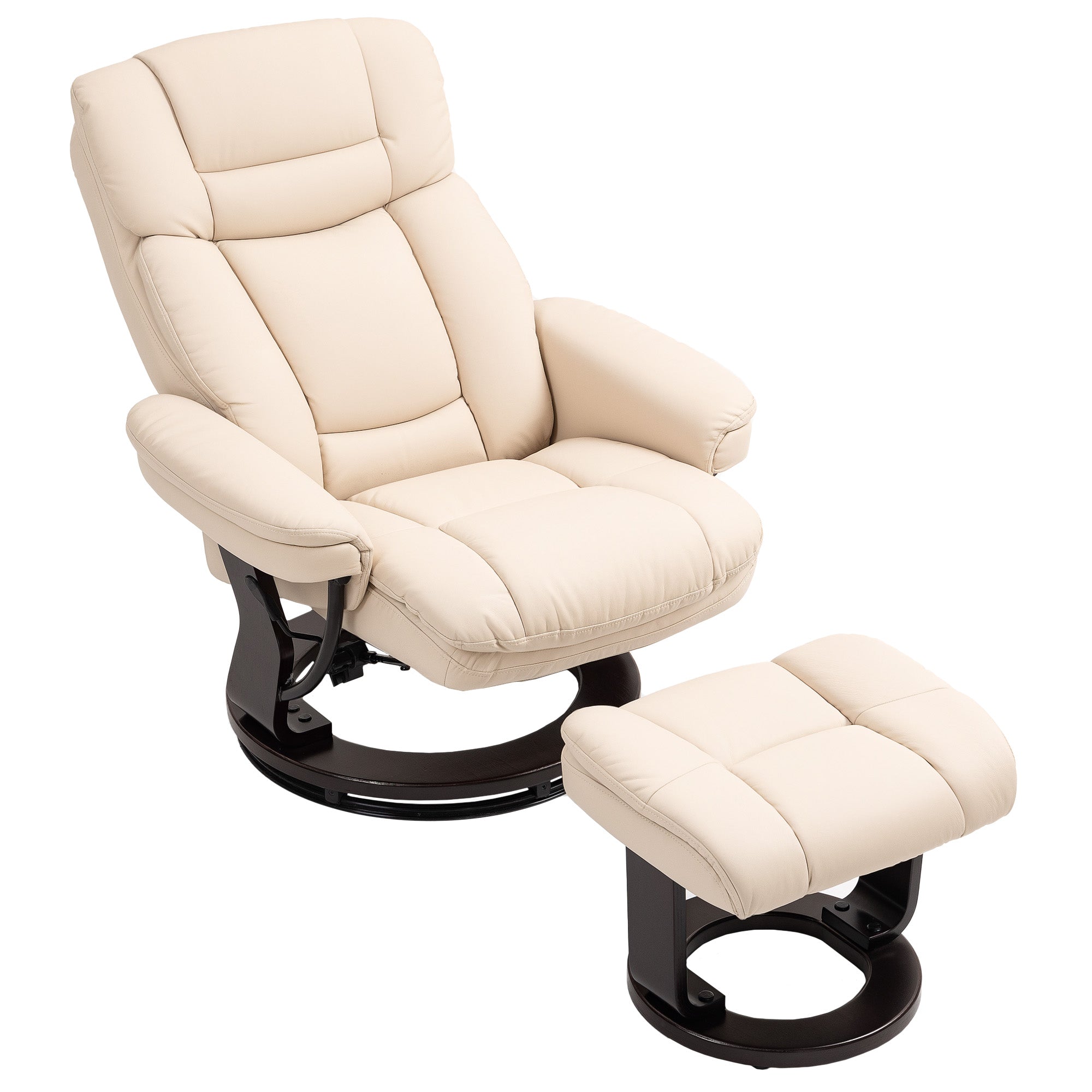 HOMCOM Atpūtas krēsls ar kāju atbalstu, 360° griežams TV krēsls ar atpūtas funkciju, TV krēsls ar kabatas atsperēm viesistabai, mākslīgā āda, krēmīgi balts