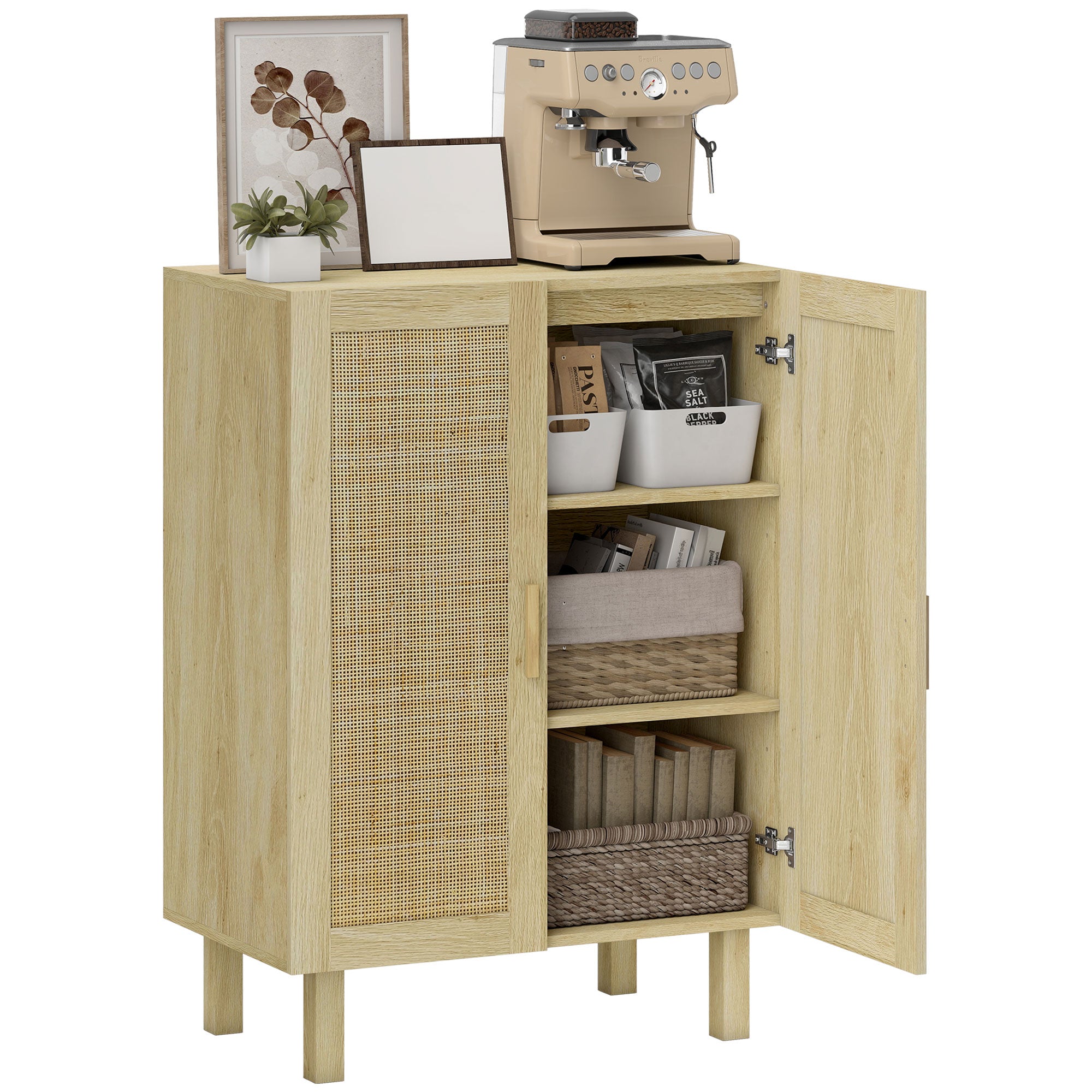 HOMCOM Rattan Cane 2-Duru Sānā Galda Boho Stils ar Regulējamām Plauktiem Viesistabai, Ieejai, Guļamistabai Dabiski 73x41x102 cm