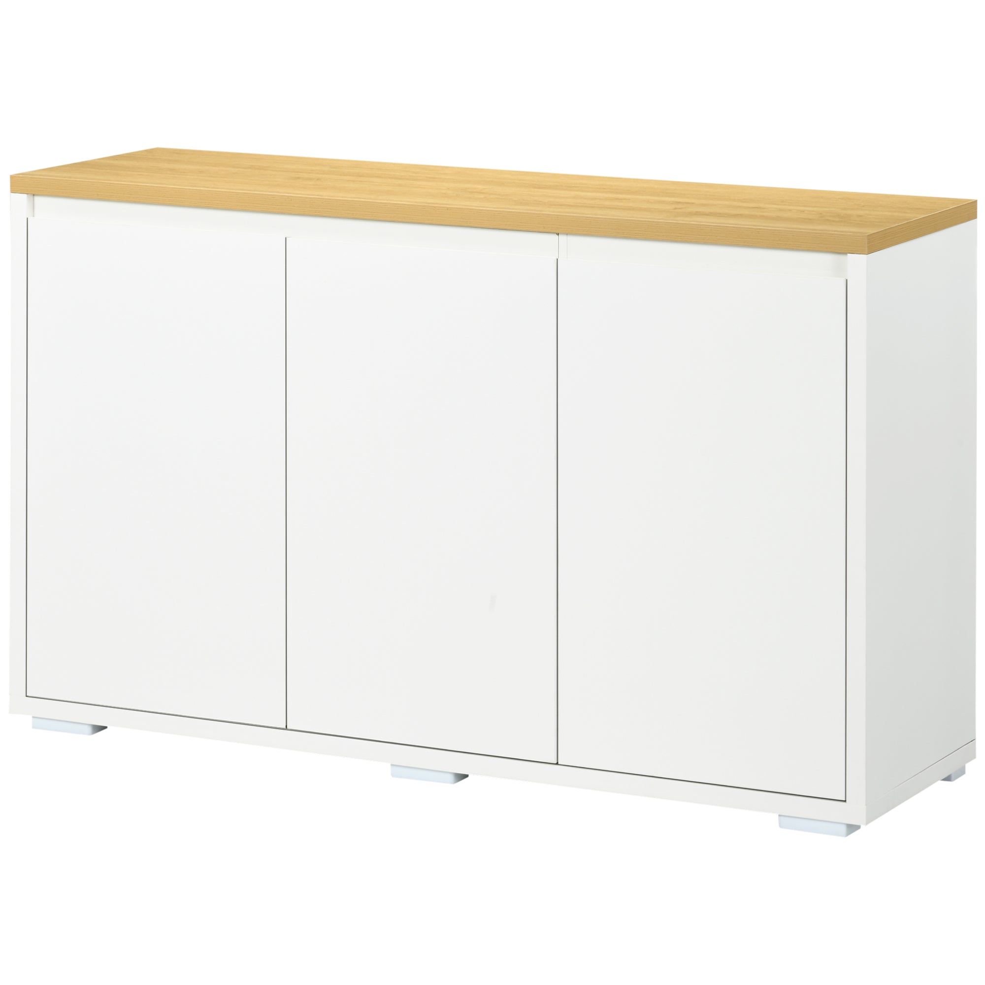 HOMCOM dzīvojamās istabas kumode ar glabāšanas kabinetu un 3 durvīm, ar regulējamām plauktiem, ēdamistabai un ieejai 120x37x75 cm Balts