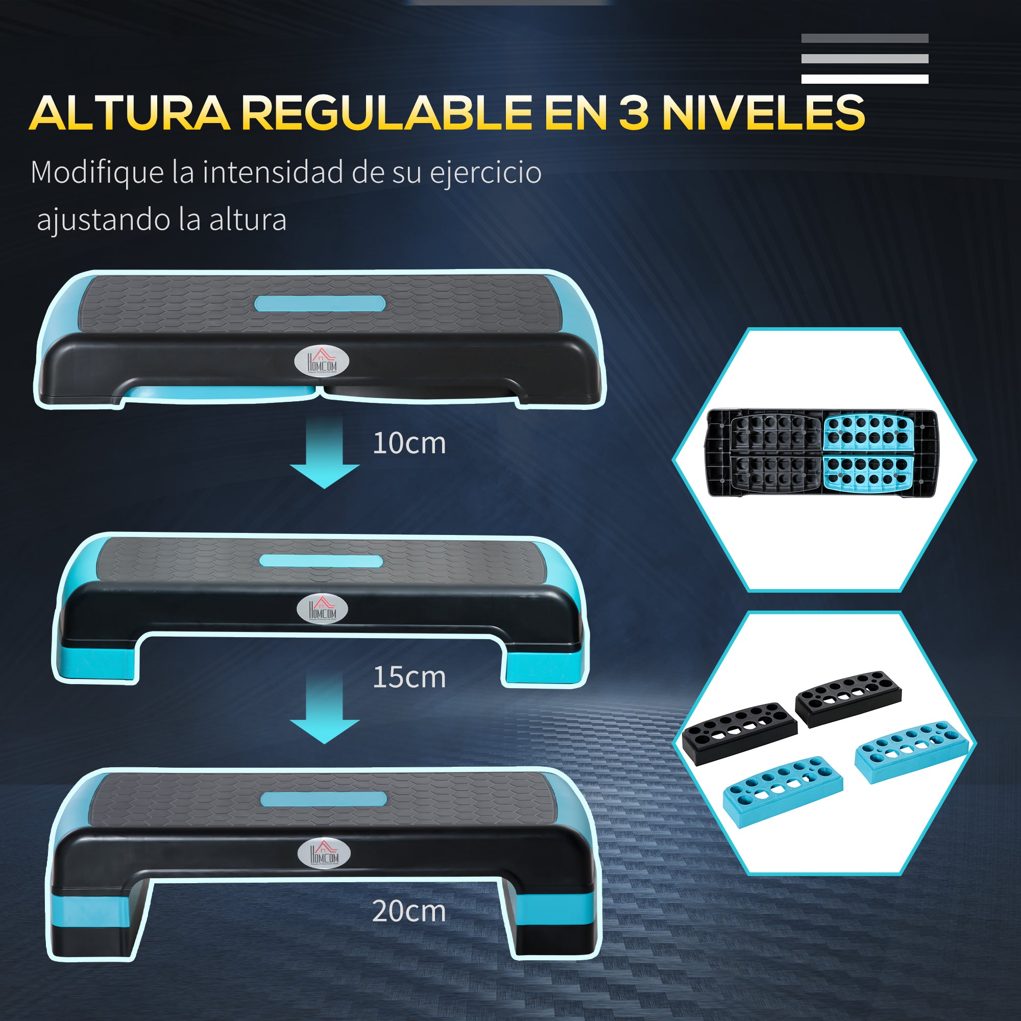 HOMCOM Aerobikas Solis - Aerobikas Platforma, Antislip Solis ar Regulejamu Augstumu 10/15/20 cm, Vingrošanas Dēlis Mājas Sporta Zālē, Slodze 150 kg, 78x28x20 cm, Zils un Melns