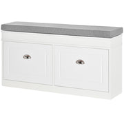 HOMCOM Apavu soliņš - Apavu uzglabāšanas soliņš 8 pāriem ar 2 atvilktnēm, regulējamām plauktiem un mīksto spilvenu ieejai vai gaitenim 104x24x55 cm balts