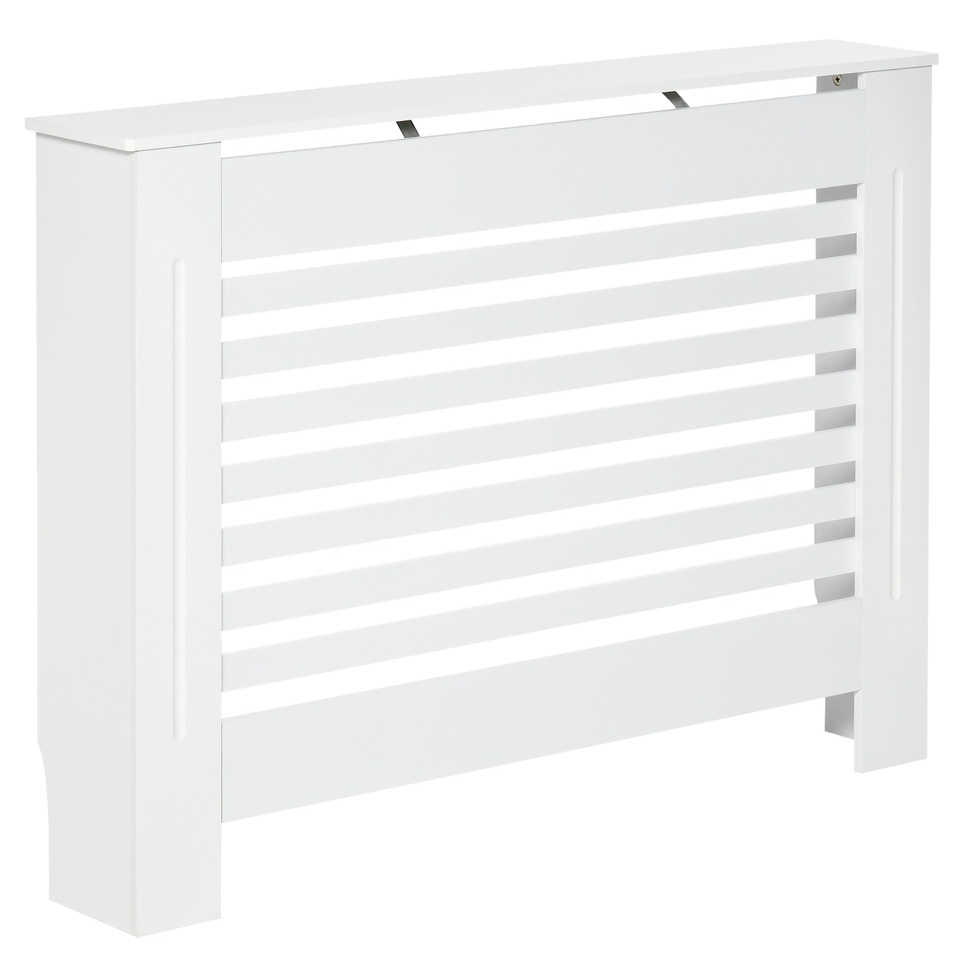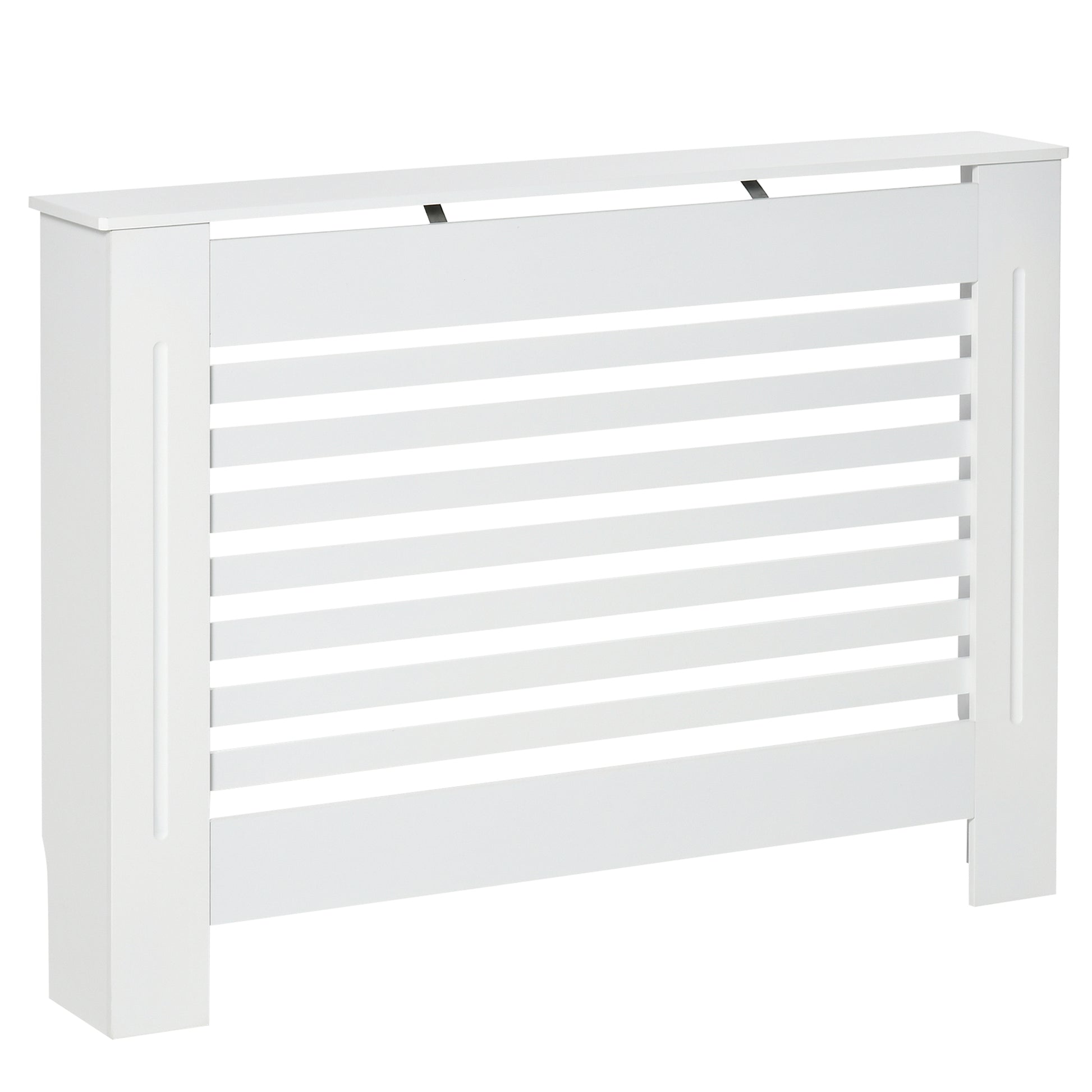HOMCOM Balts Koka Radiatora Vāks ar Slatņu Struktūru un Plauktu, 112 x 19 x 81cm