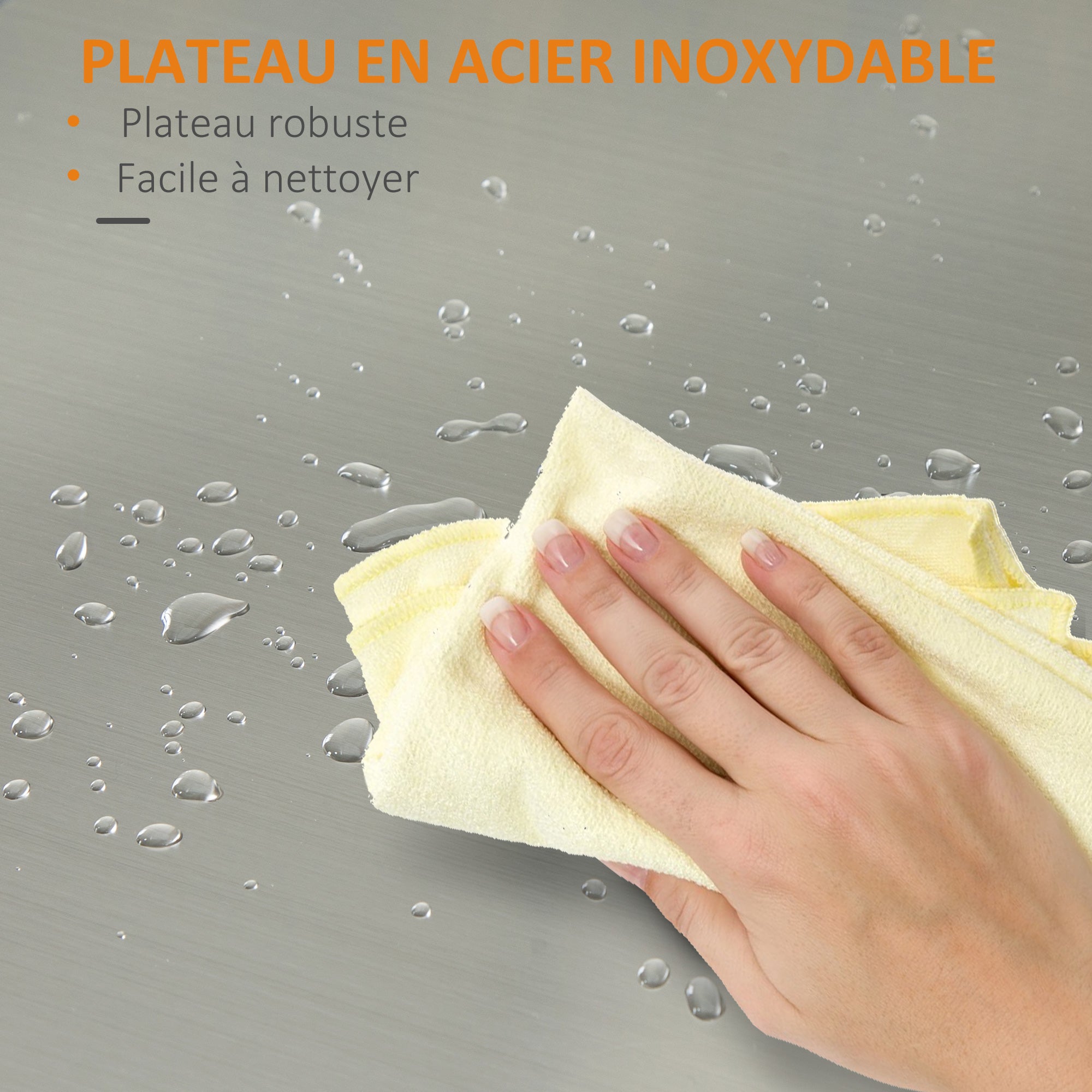 - - KVALITATĪVS DIZAINS, RAŽOŠANA: Šis virtuves ratiņš ir izgatavots no MDF un E1 klases kokšķiedras plāksnēm, viegli tīrāms un apkopjams nerūsējošā tērauda virsma ilgstošai lietošanai.