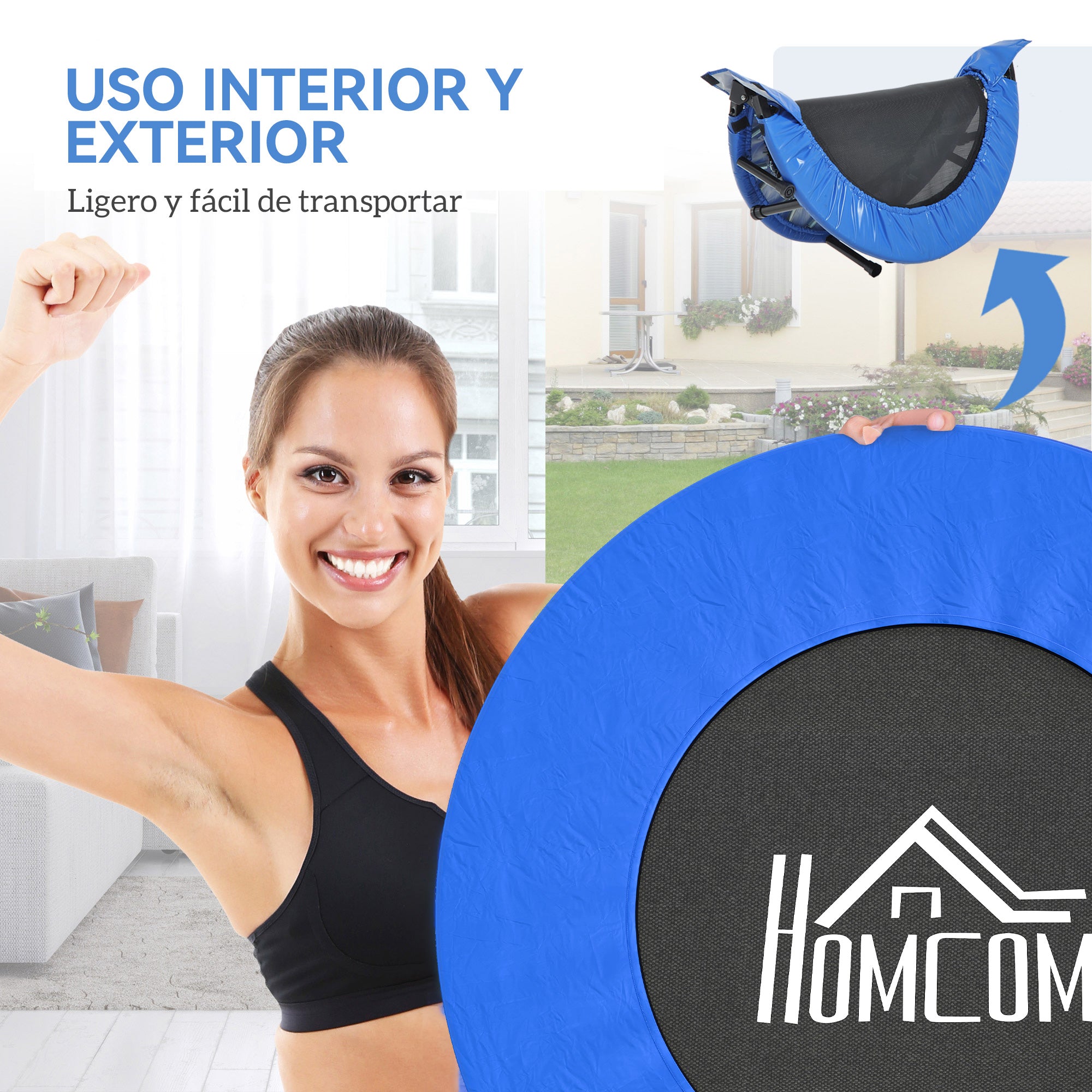 HOMCOM Fitness Trampolīns Ø81 cm Tērauda Trampolīns ar Drošības Pārklāju un 28 Atspringumiem Iekštelpām un Ārtelpām, Iespējams Svaru līdz 100 kg, 81x81x22.5 cm Melns un Zils