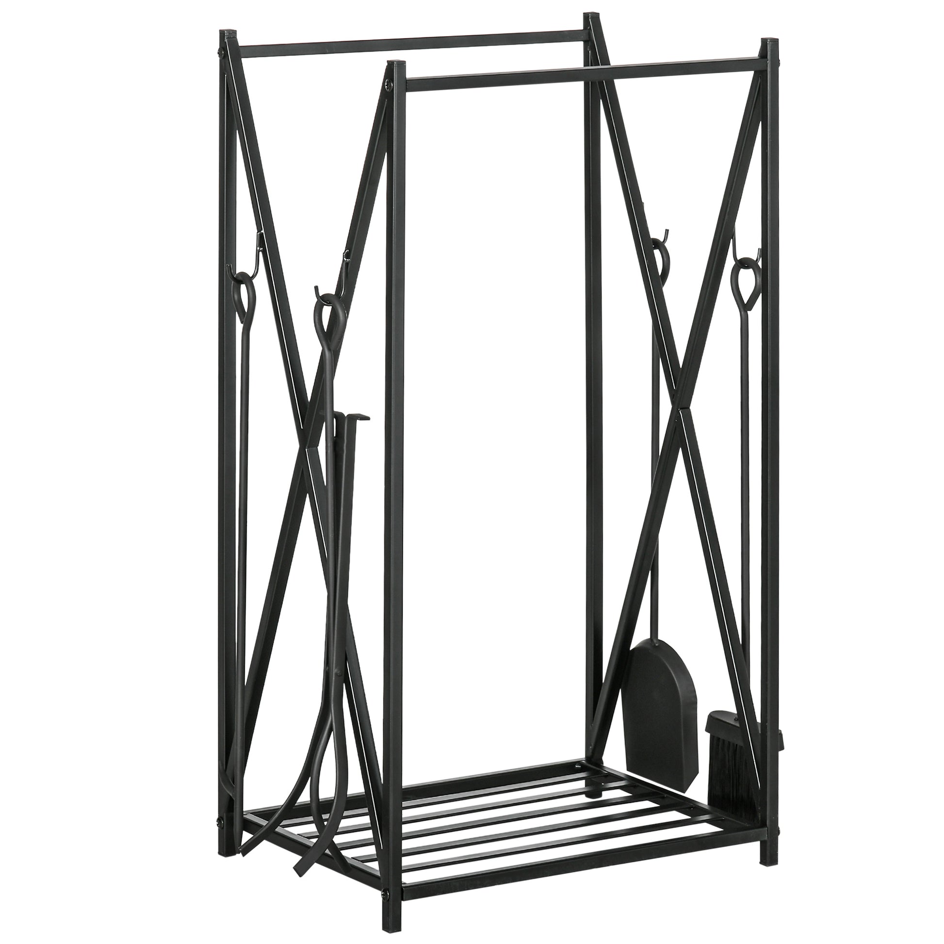 HOMCOM Kamīna malkas turētājs 46x30x76 cm ar 4 instrumentiem, tērauda rāmis, stabils līdz 100 kg, iekštelpām un ārpus tām, melns