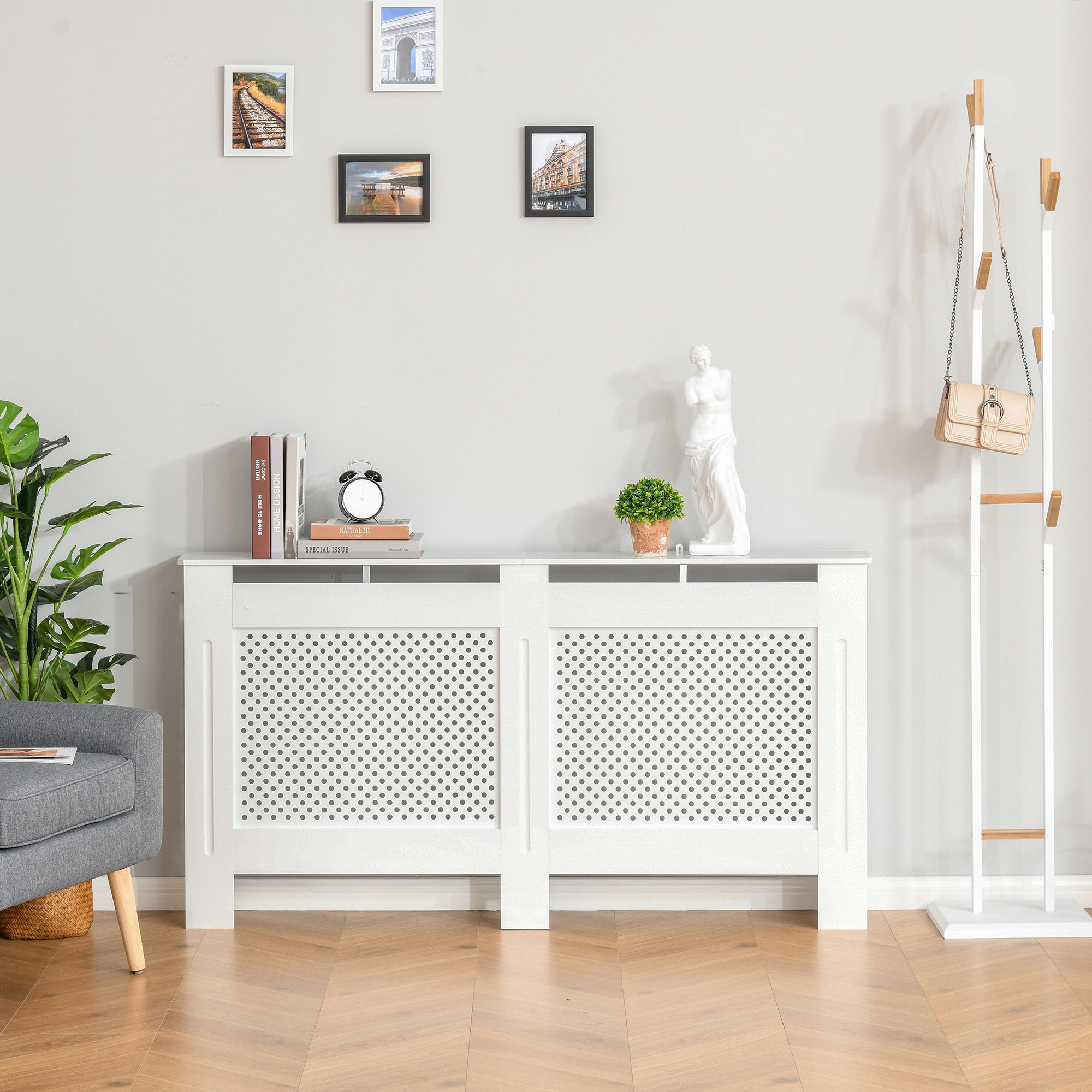 HOMCOM MDF Koka Radiatora Vāks, Moderns Radiatora Skapis ar Krāsotu Balto Augšējo Plauktu, 151.5x82x19 cm