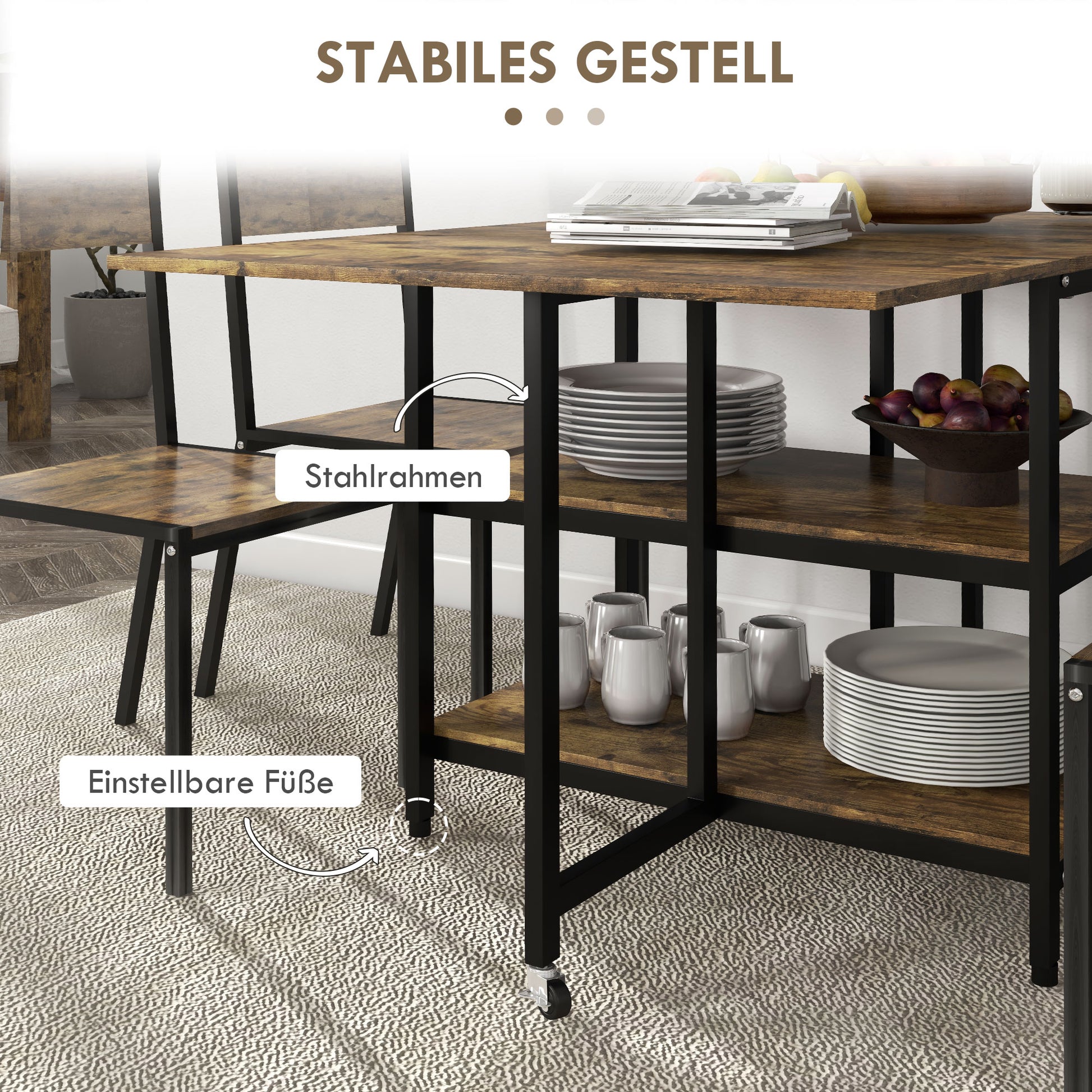 HOMCOM Paplašināms Salokāms Ēdamgalds Taisnstūra Kūrēto Galda 2-6 Personām ar 2 Atvērtām Plauktiem 140cm x 80cm x 75cm Rustikāli Brūns