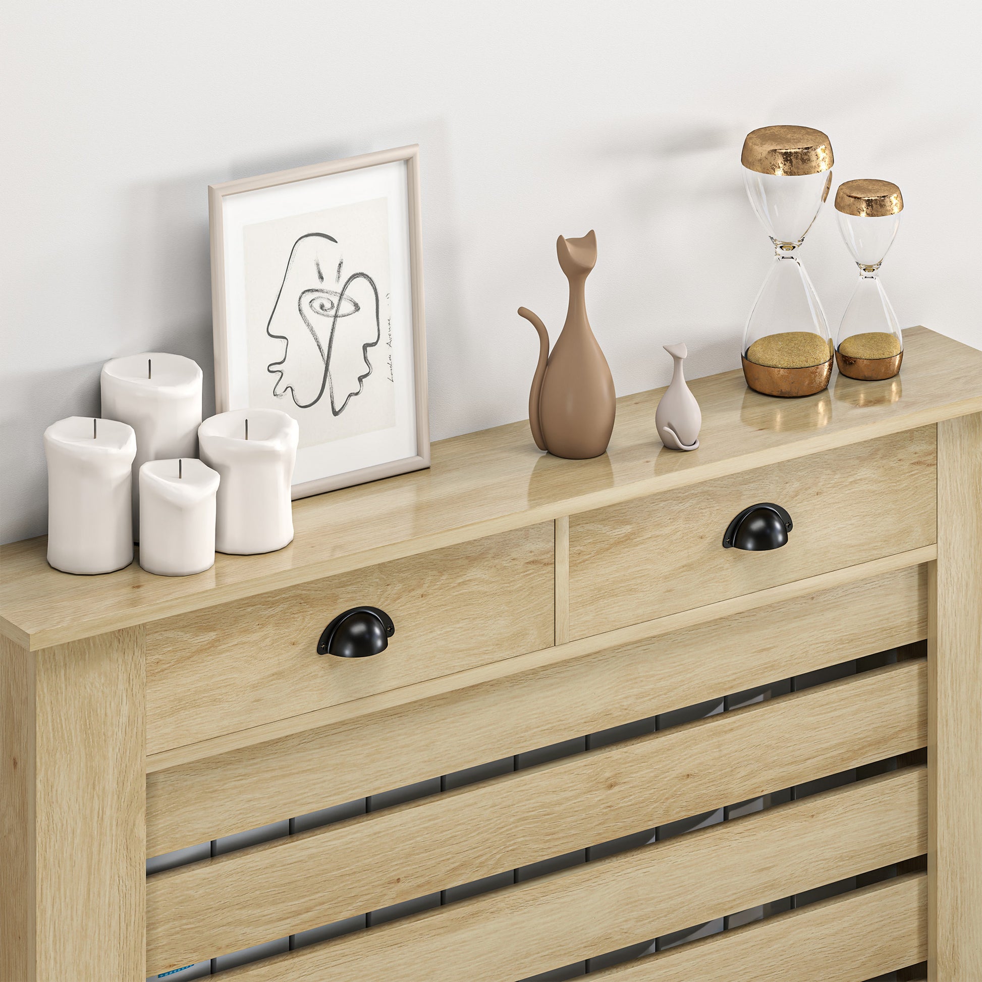HOMCOM Radiatora Vāks ar Atvilktni MDF Radiatora Vāks Dzīvojamai Istabai, Guļamistabai, Priekšnams 111x19x95.5 cm Ozolu