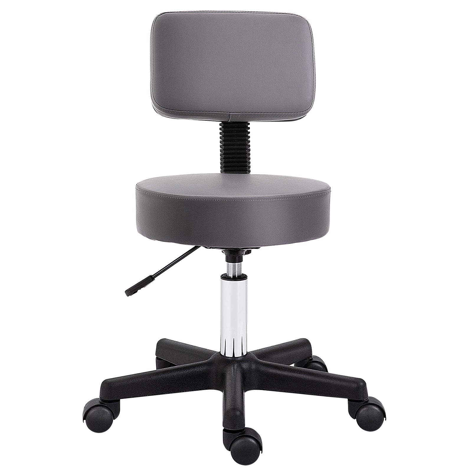 HOMCOM regulējamais krēsls ar atzveltni, rotējošais salons krēsls masāžas birojam, mākslīgā āda, pelēks Ø35 x 72-84 cm
