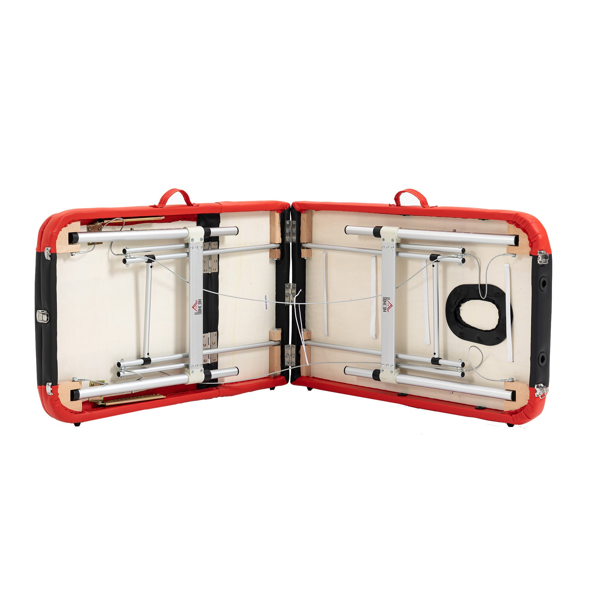 HOMCOM Saliekamās masāžas galdi ar regulējamu augstumu, portatīvs masāžas galds, alumīnija, putas, PVC āda, plastmasa, Melna+Sarkana 215 x 81 x 61-84 cm