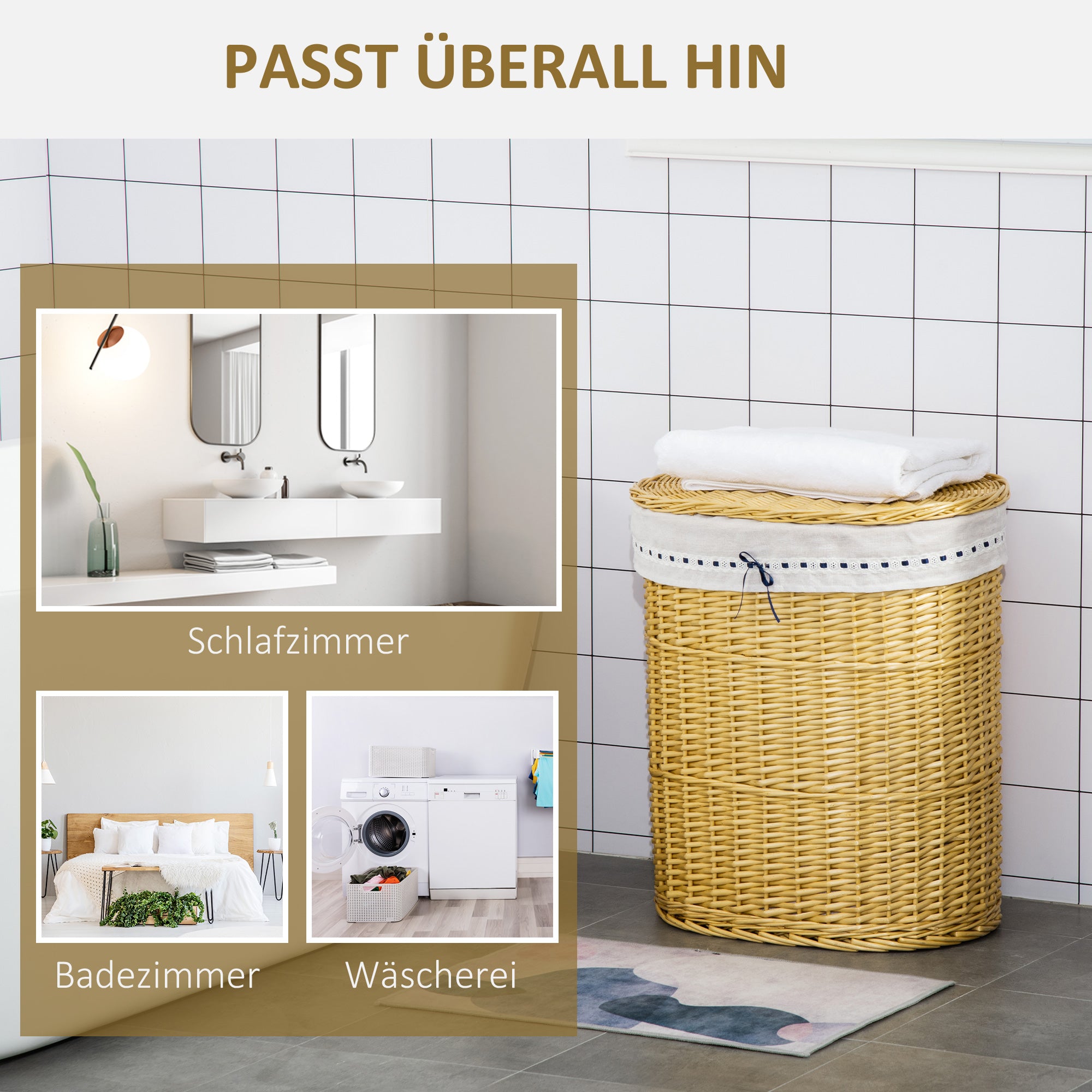 HOMCOM Vībotņu Veļas Grozs ar Vāku un Rīsiem, Noņemama Veļas Soma, Veļas Grozi, Veļas Kaste Vannas Istabā, Veļas Telpā, Guļamistabā, Dabiskais