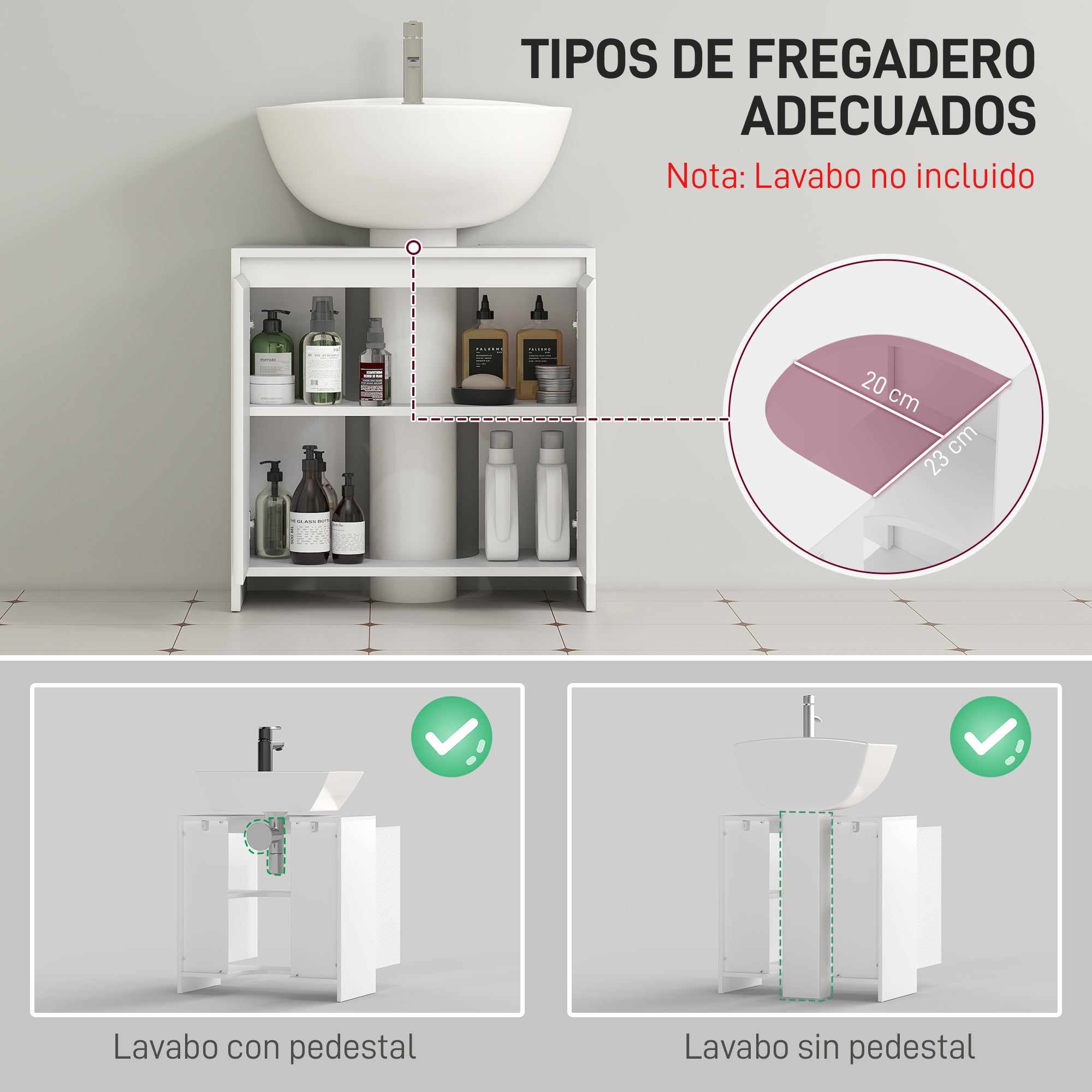 - - INTELIGENTS DIZAINS: Aprīkots ar 23x20 cm U formas izgriezumu, šis zem izlietnes skapītis lieliski pielāgojas caurulēm, nodrošinot ideālu pielāgošanu pie sienas piestiprinātu izlietņu, nepazeminot stilu vai funkcionalitāti
