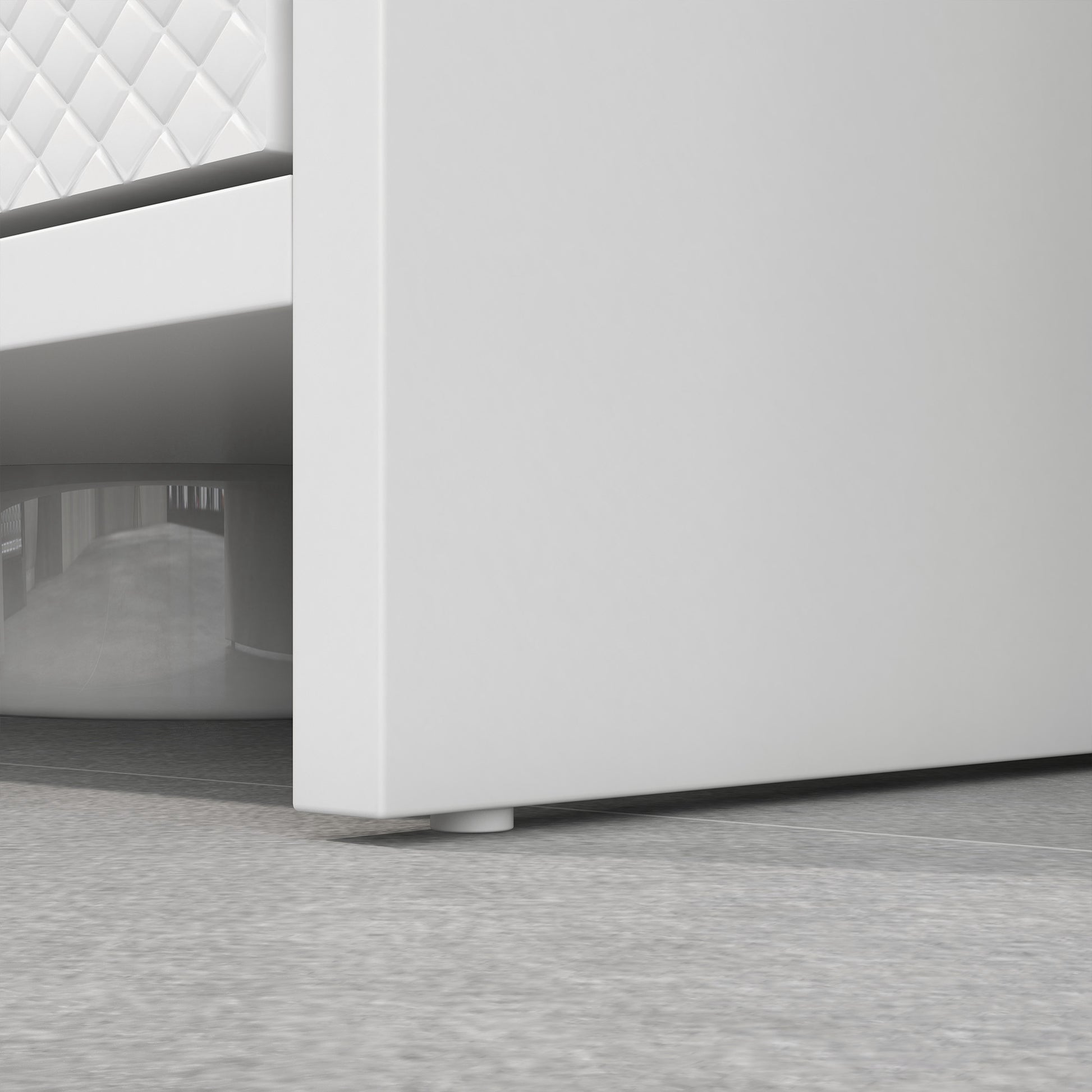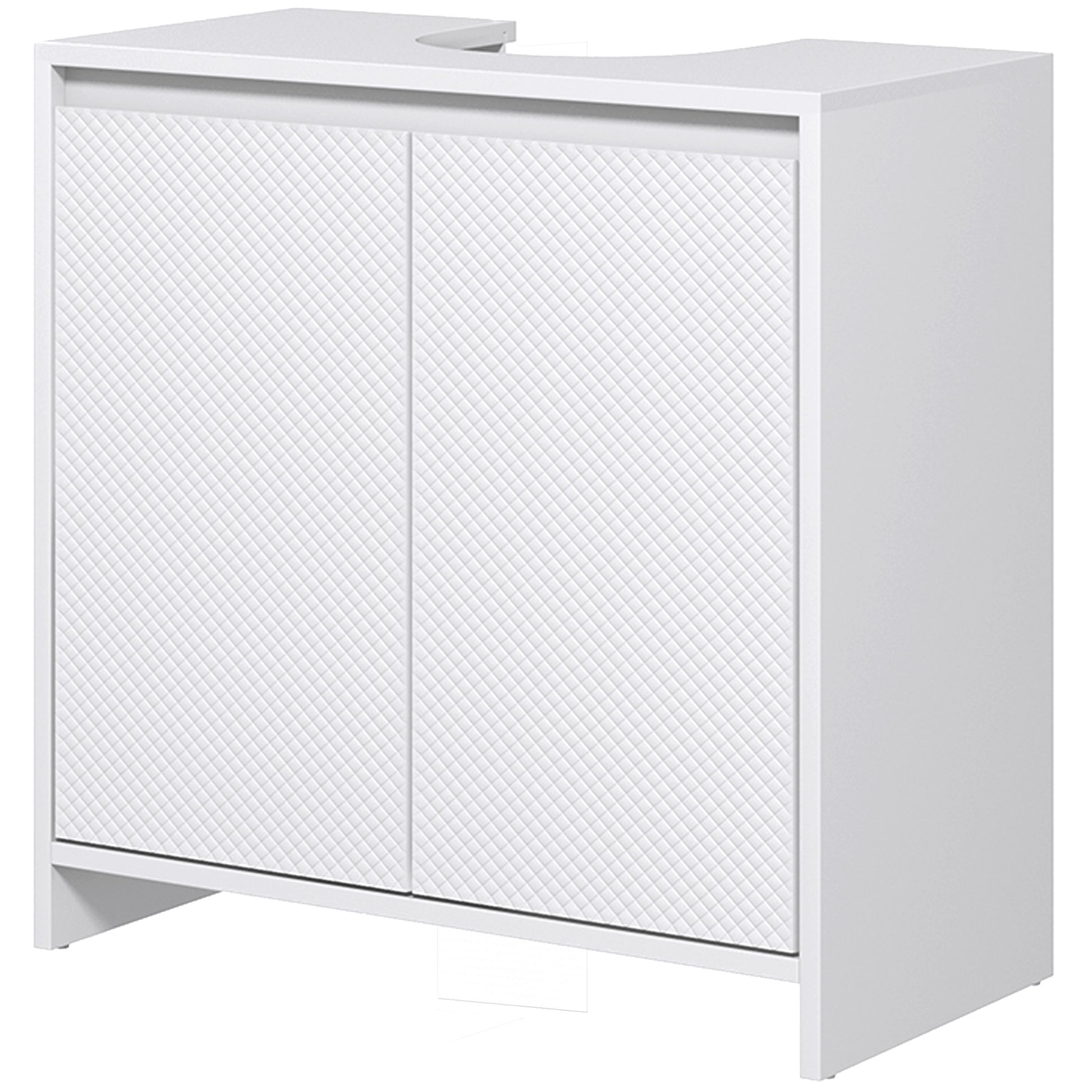 - - MODERNS STILS: Šis zem izlietnes skapītis ar baltu apdari un durvīm, kas rotātas ar maziem dimanta formas rakstiem, piedāvā unikālu tekstūru, kas papildina dažādus vannasistabas stilus. Augšējā paneļa slīpā konstrukcija rada bezrokturu izskatu, padarot to viegli atveramu ar pirkstiem