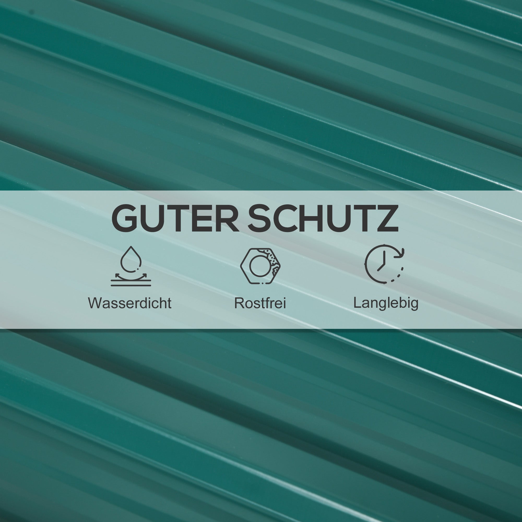 Outsunny 12 Gabali Trapezoidālie Kārti 129x45cm 7m² Cinkota Jumta Kārta 0,25mm Laika Apstākļiem Izturīga Profila Kārta Cinkota Tērauda Jumta Paneļi Tērauda Kārti Korozijas Kārtiem Rīku Dārzam Autostāvvietai Zaļš