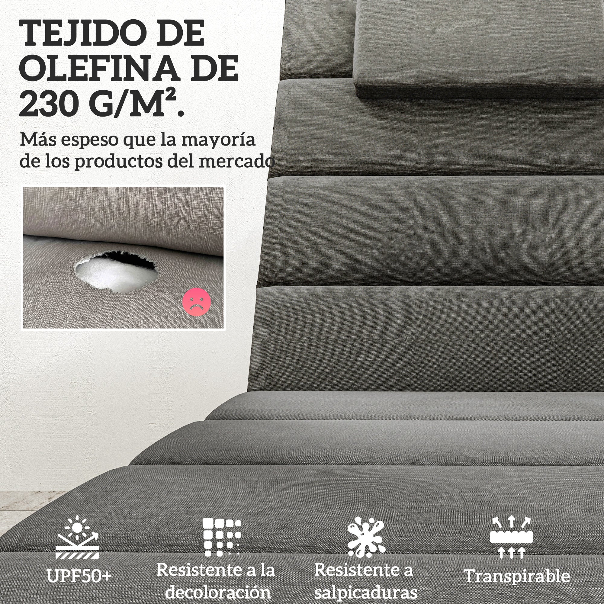 Outsunny 2 spilvenu komplekts saliekamajiem atpūtas krēsliem – Dārza sauļošanās spilveni 203x66x3 cm ar galvas atbalstu un siksnu stiprinājumiem Tumši pelēks