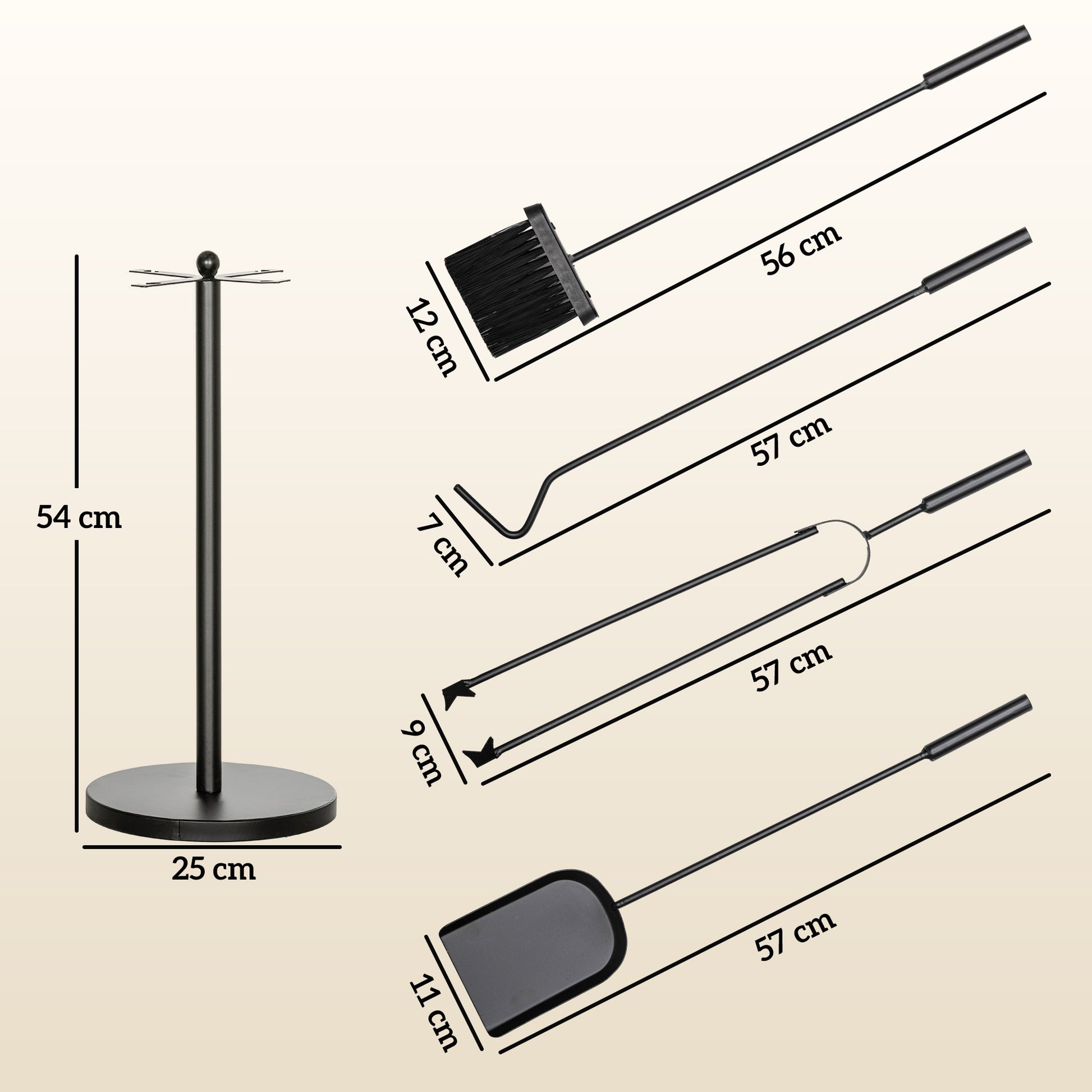 Outsunny 5 gab. kamīna rīku komplekts ar lāpstu, slotu, knaiblēm, piekūnu un stendu, metāla, melns