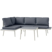 Outsunny dārza mēbeļu komplekts 4 personām, laika apstākļiem izturīgs balkona mēbeļu komplekts ar 2-sēdvietu dīvānu, spilveniem, sānu galdiņu tērauda āra sēdvietu grupu, terases mēbeles dārza atpūtai pelēkā krāsā