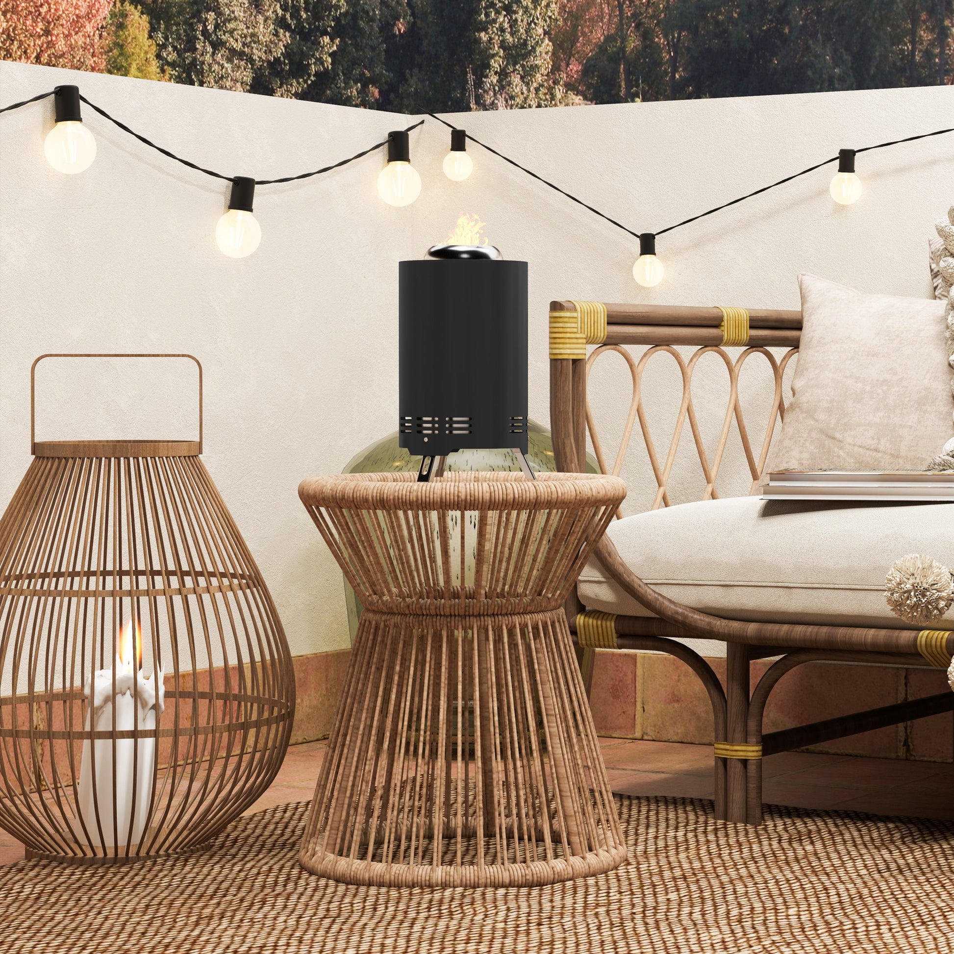 Outsunny Nerūsējošā Tērauda Ugunsbedre Ø16x25cm ar Pokera Rīku, Dūmus Brīva Ugunsbedre Dārza, Balkona Terasē, Āra BBQ Kempings Melna