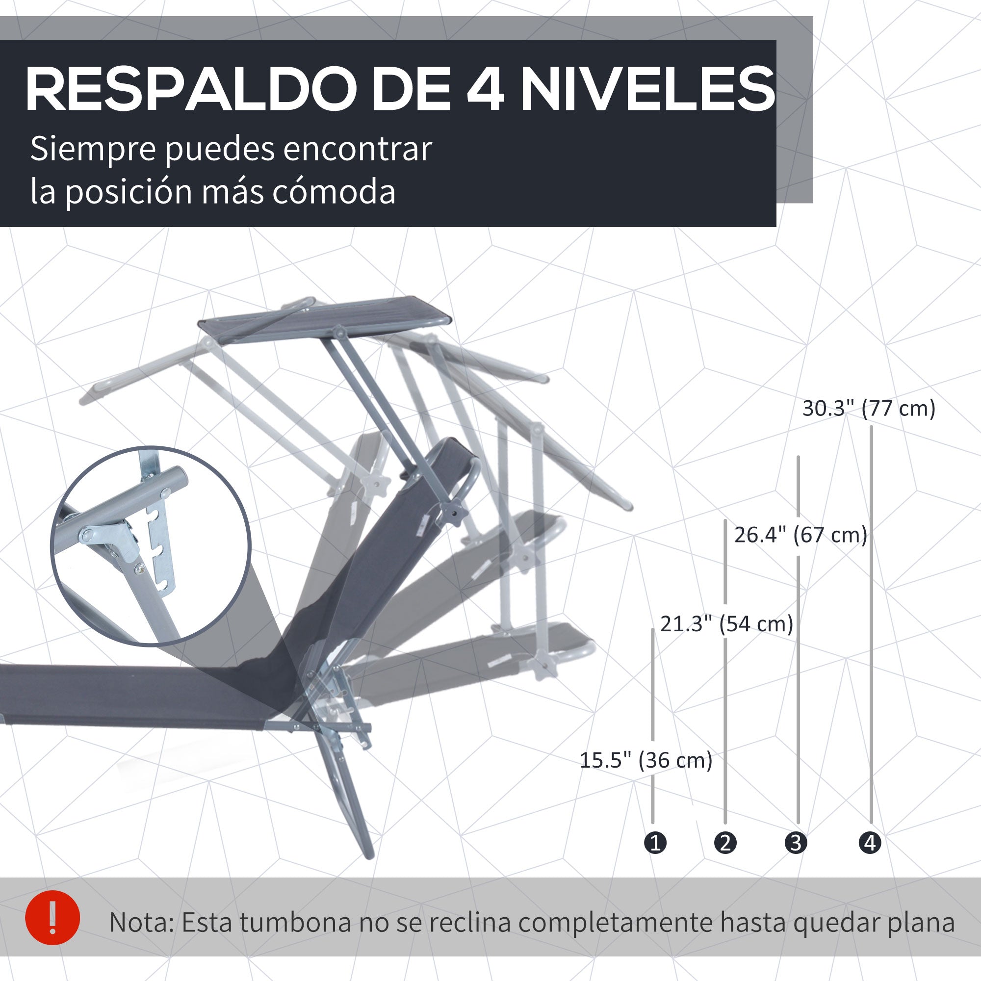 Outsunny Saliekamais Dārza Sauļošanās Krēsls ar Noņemamu Regulējamu Loku un Atlocāmu Muguras Balstu Terasei, Kempingam, Ārā 187x58x36 cm Pelēks