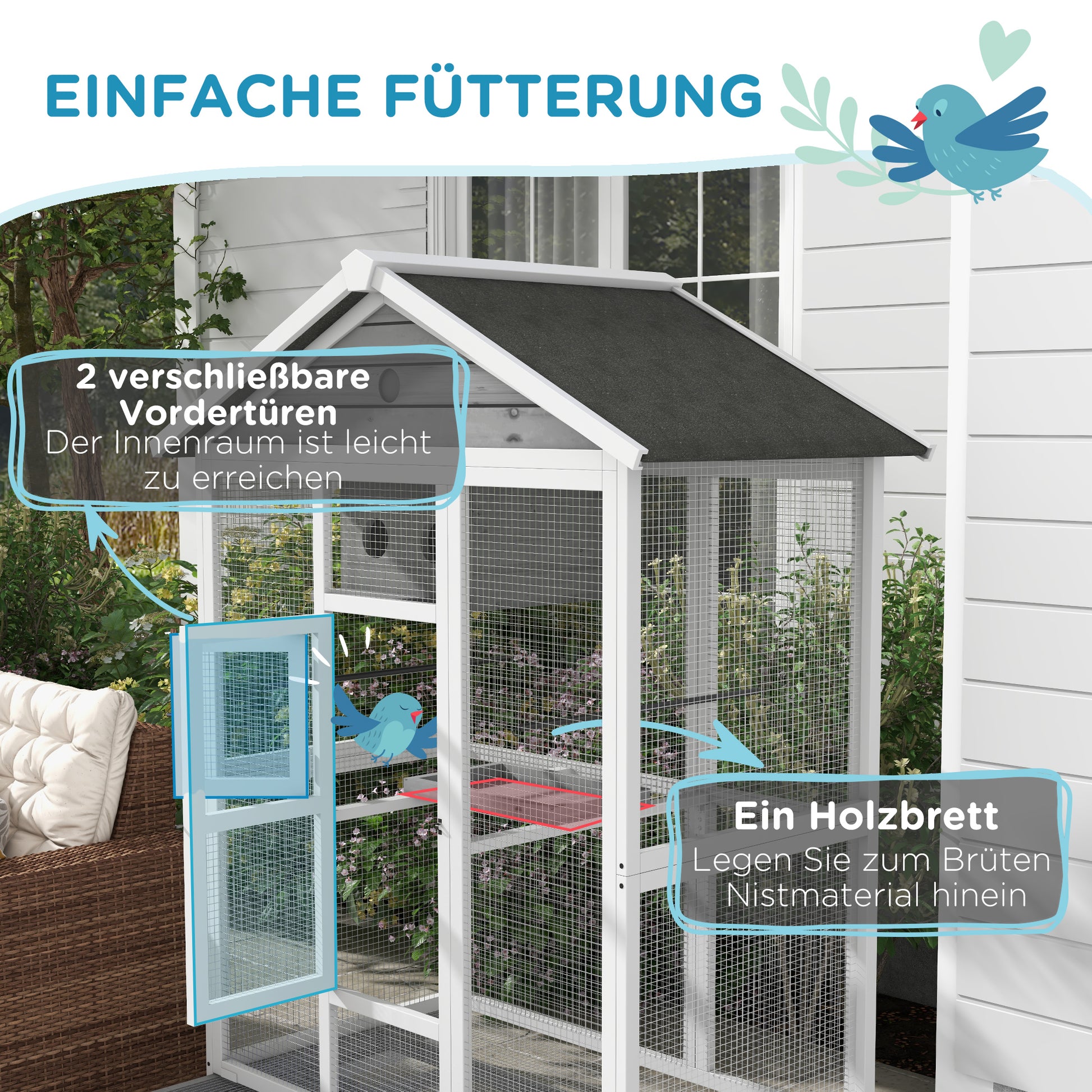 PawHut Koka Putnu Voljēra Liela Budaža Sproģu Rūpes ar 4 Pūriem, Putnu Māja ar Izvelkamām Lādēm, Putnu Māja Kanārijām, Egle, 112 x 68 x 154 cm