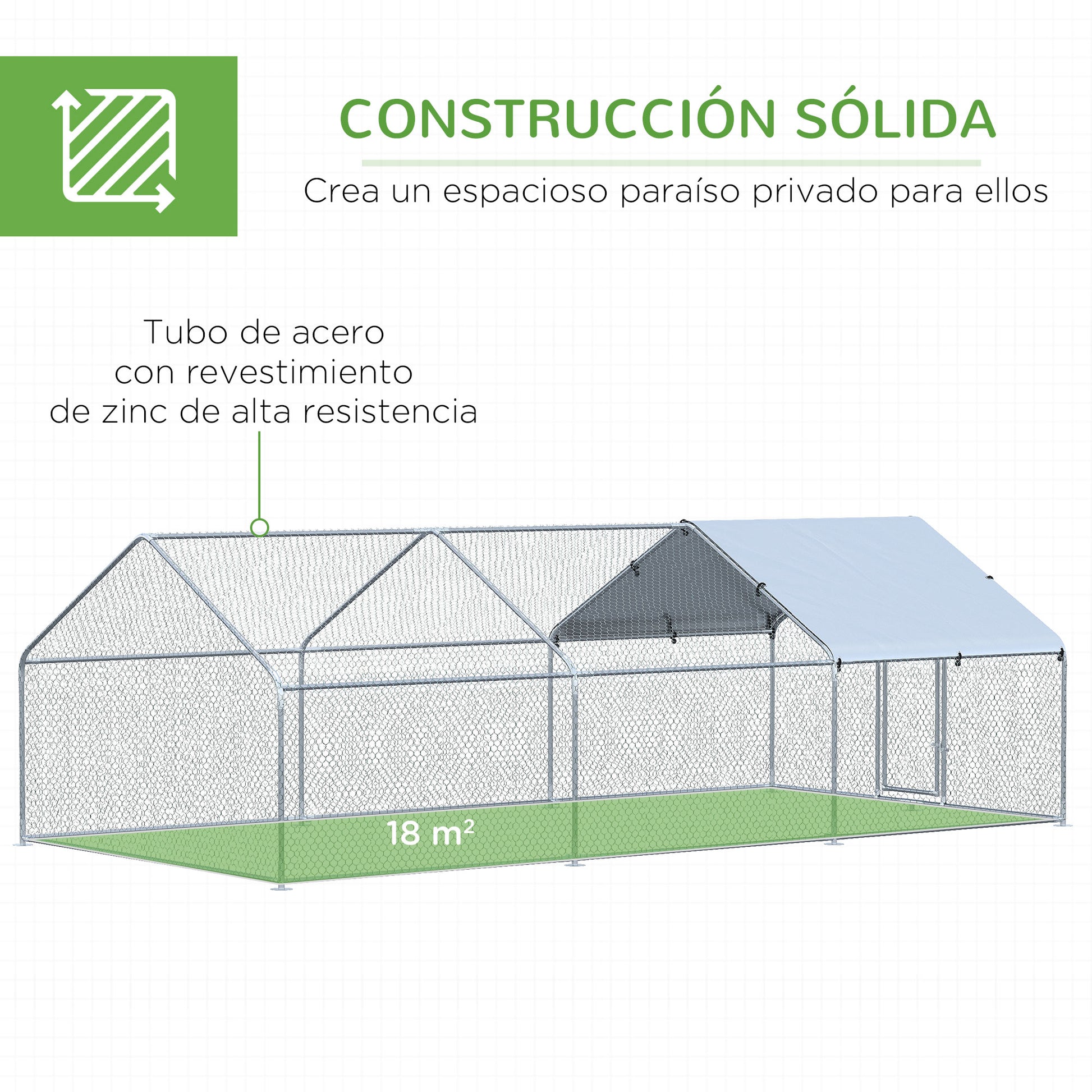 PawHut liels āra cinkots metāla vistas būris 3.03x6x1.95 m 3 istabu vistas iekārta ar Oxford auduma pārklāju UV un ūdensizturīgu dārza risinājumu Sudraba