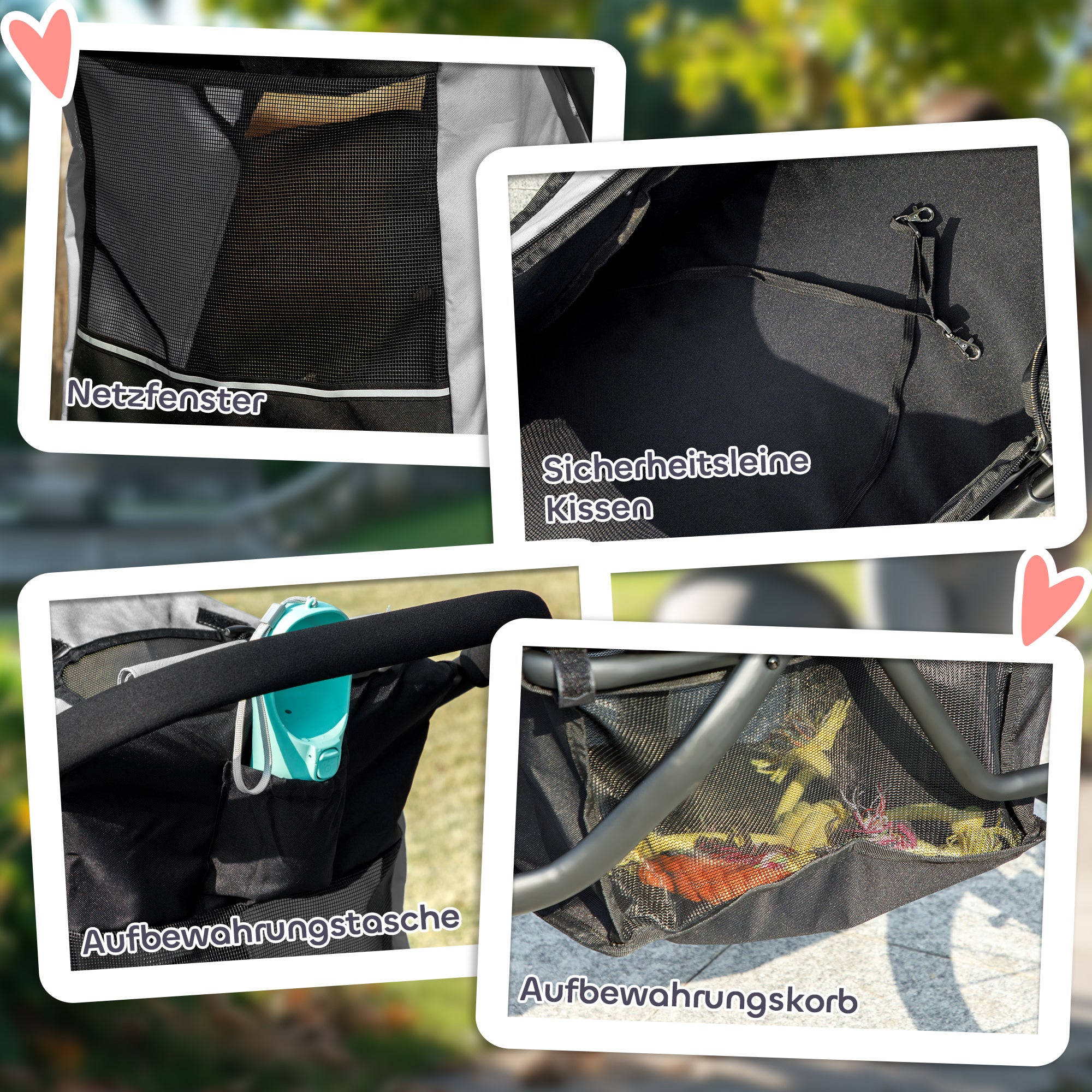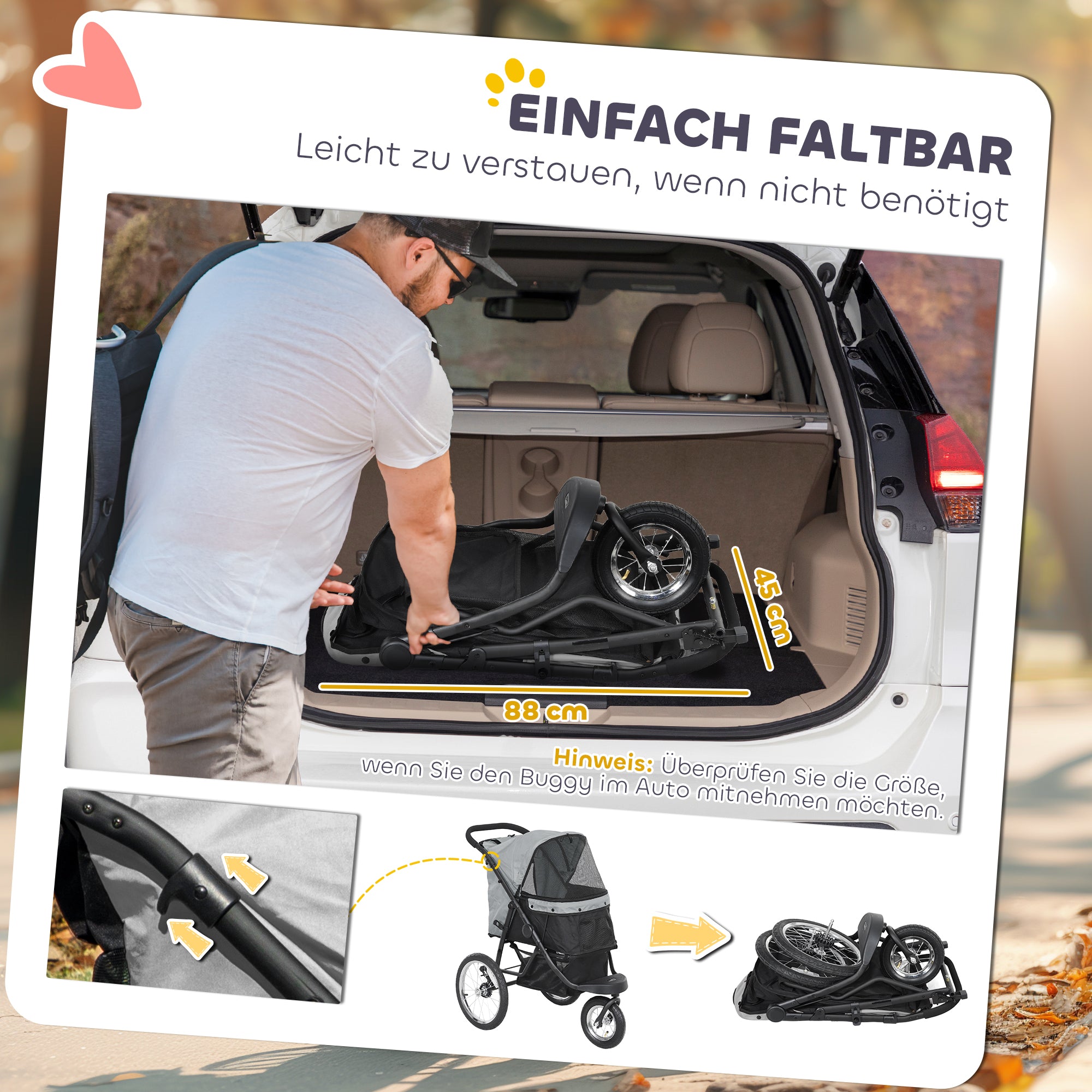 PawHut suņu ratiņi jogger suņu ratiņi, saliekami maziem suņiem un kaķiem līdz 10 kg, kaķu ratiņi ar 3 lielām gumijas ritenēm, mīkstiem acs logiem un uzglabāšanas grozu, pelēka