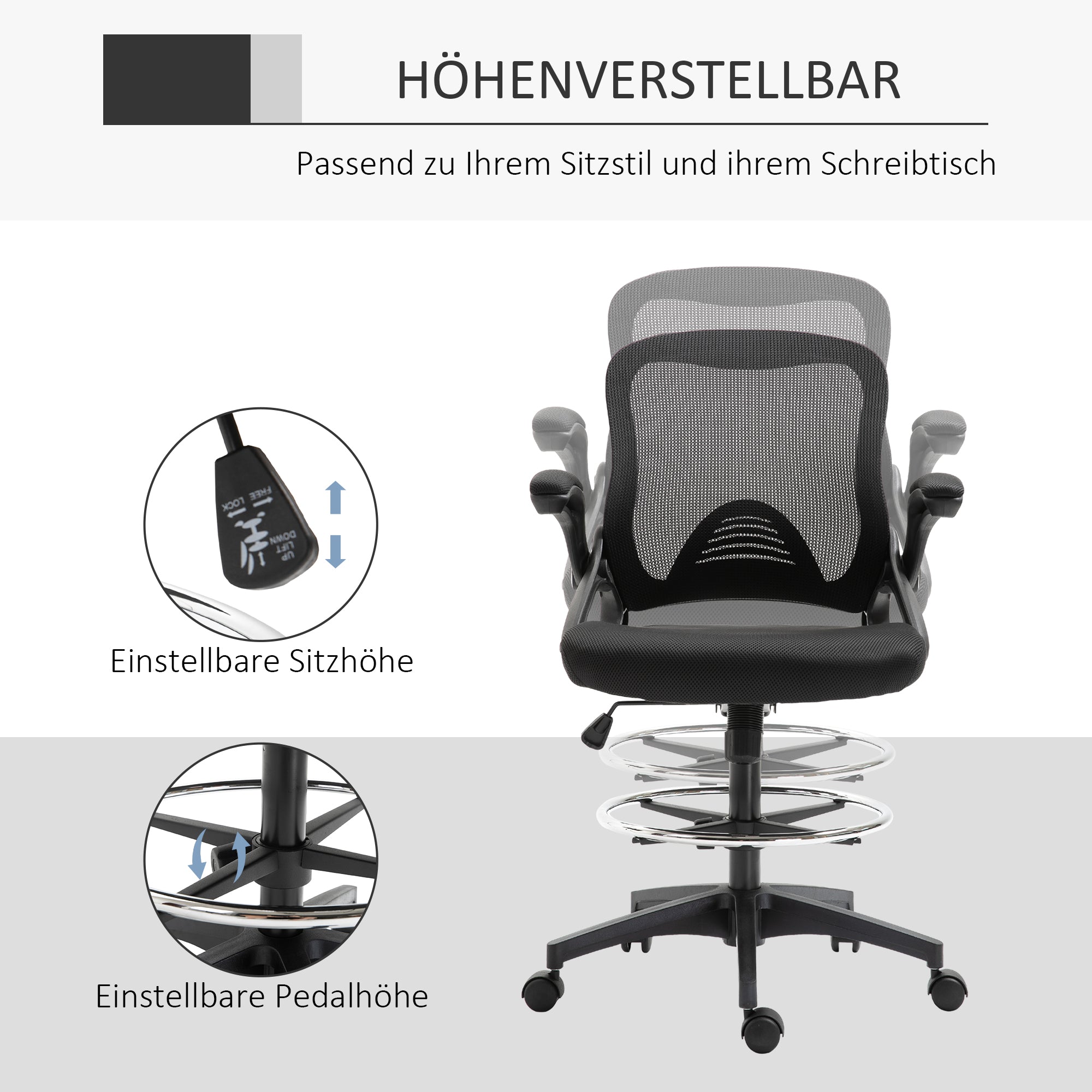 Vinsetto Ergonomiskā Galda Krēsls ar Pacelamiem Rokturiem un Reguliējamu Kāju Gredzenu, Augstums Regulējams Griezes Krēsls ar Svingo Funkciju, Acs Melns