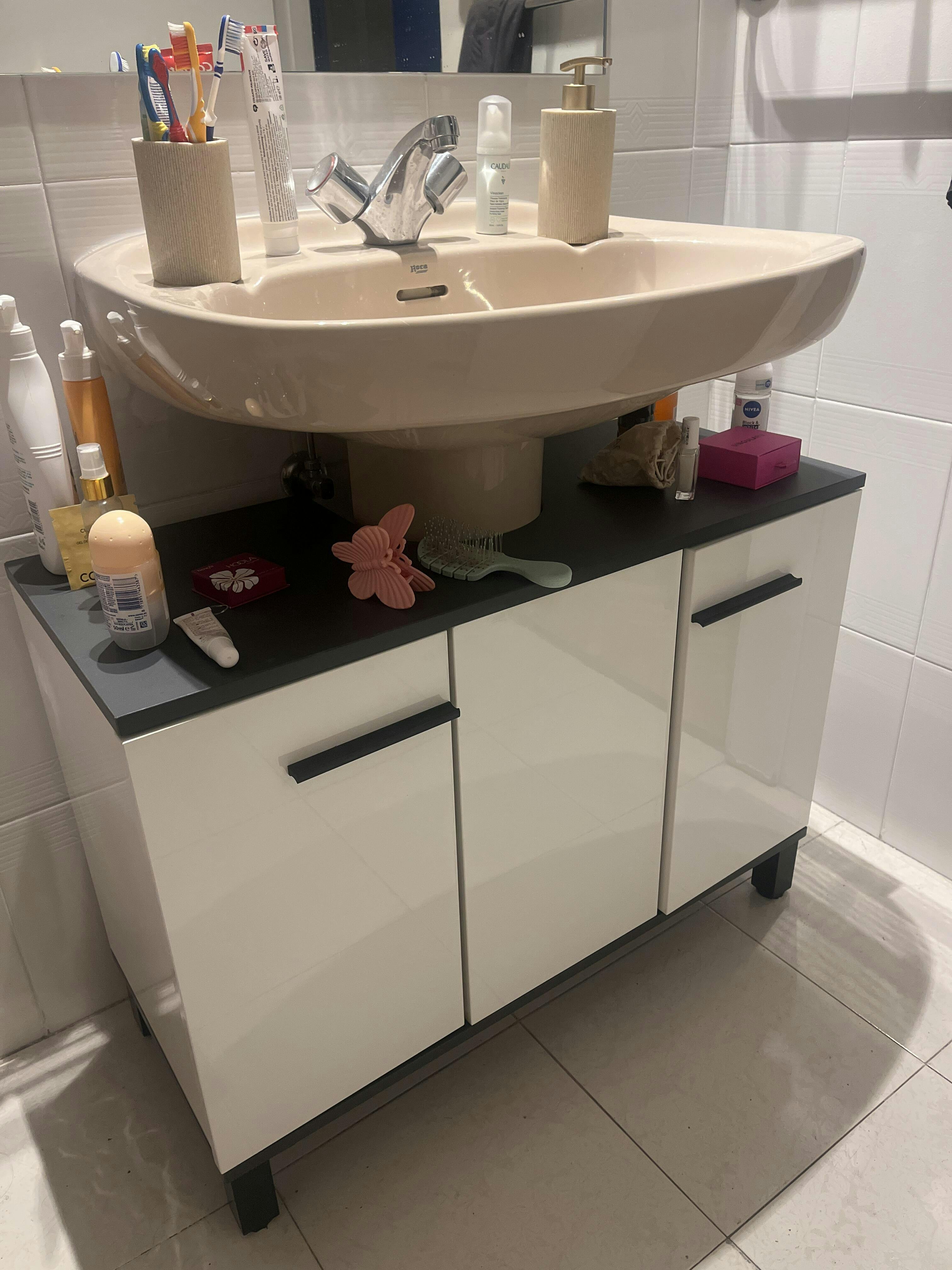 - - SLIM EN COMPACTE OPSLAG: Maximaliseer de ruimte onder uw wastafel met deze kast die een drie-niveau verstelbare plank achter twee deuren heeft, ideaal voor het organiseren van uw badkamerbenodigdheden van verschillende hoogtes en maten