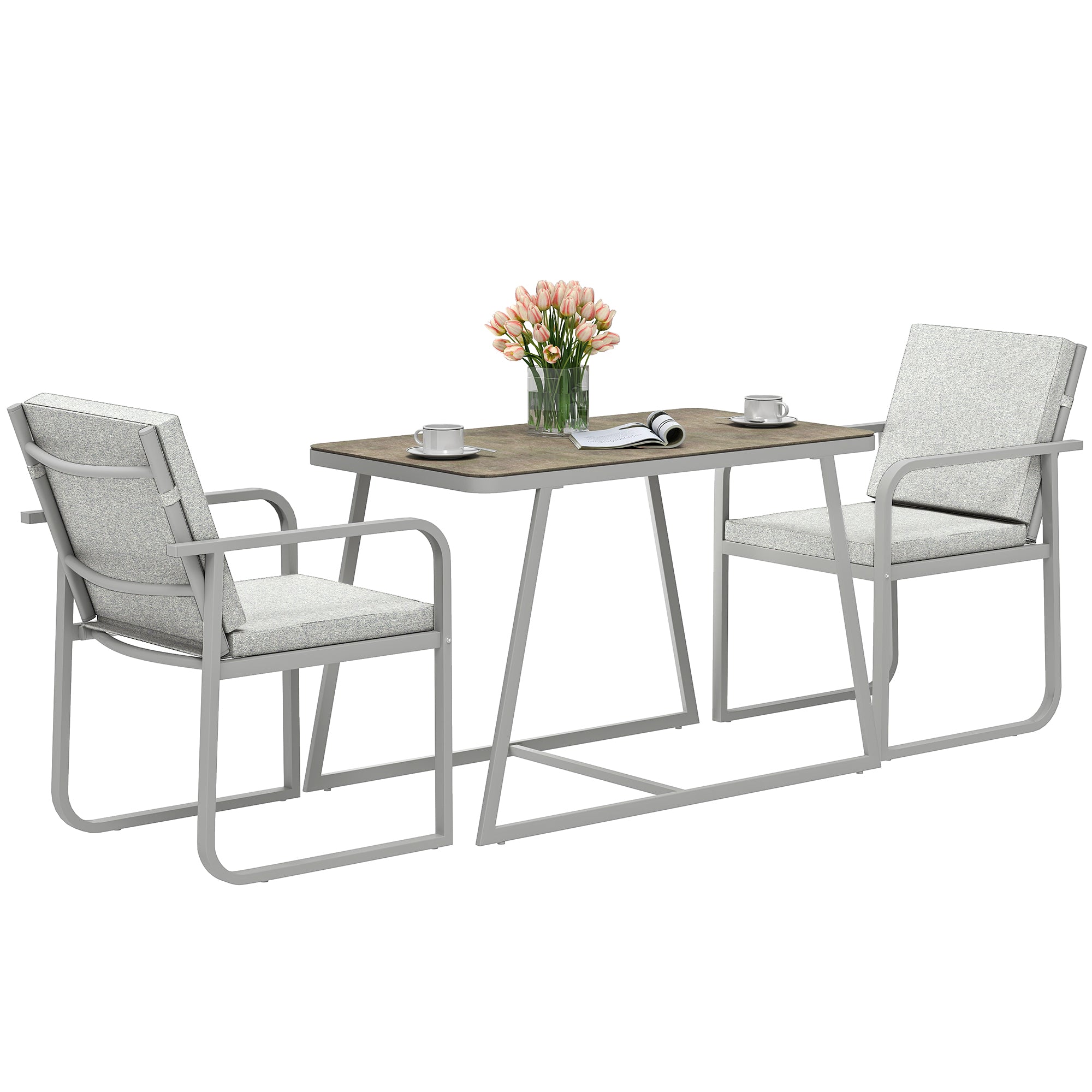 Outsunny 3-delig Tuinmeubelset, Bistro Set met 1 Tafel, 2 Stoelen met Zitkussens, Balkon Set, Patio Meubilair voor Terras, Balkon, Staal, Grijs
